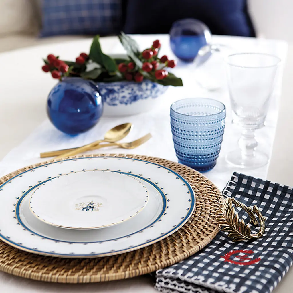 Chinoiserie is one our favorite trends and our Ming Chinoiserie Dinner Plates are a pretty way to layer in the look. Designed by our own in-house artist, the classic pattern is hand embellished with golden accents. Ming Chinoiserie Dinner Plate features: