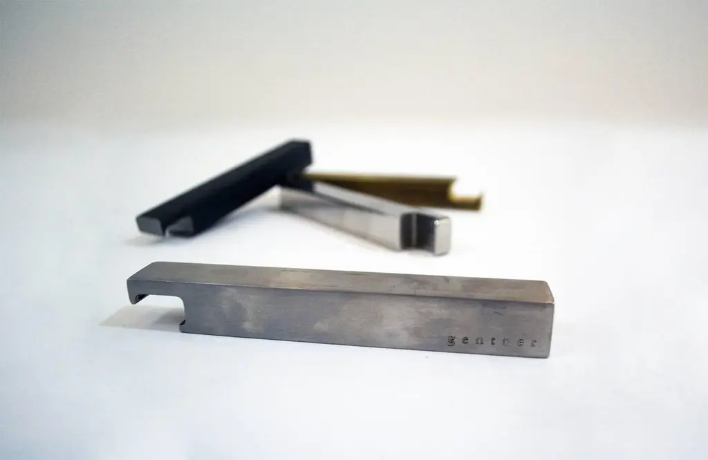 Minimal Bottle Opener Made In Brass, Stainless Steel And Raw Steel