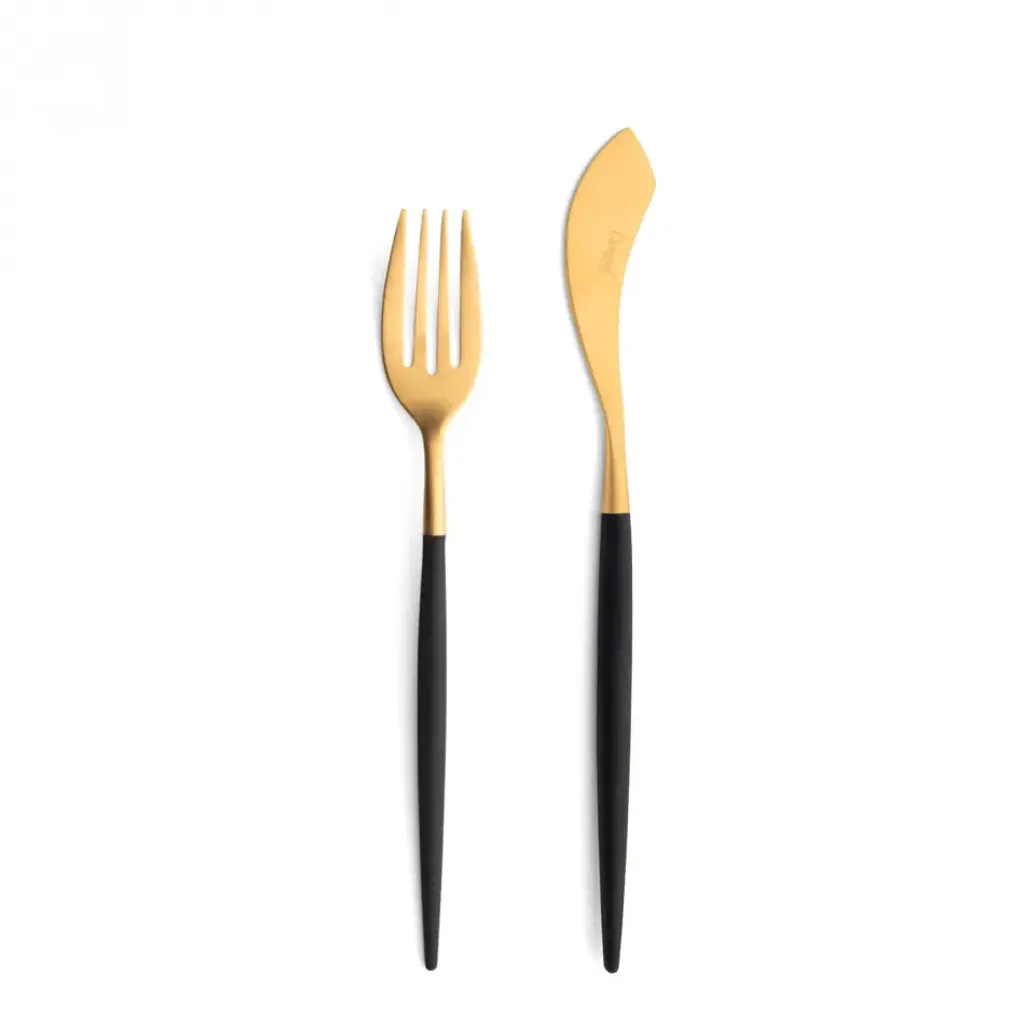 Mio Black Handle/gold Matte Oyster Fork 6.9 In (17.5 Cm)