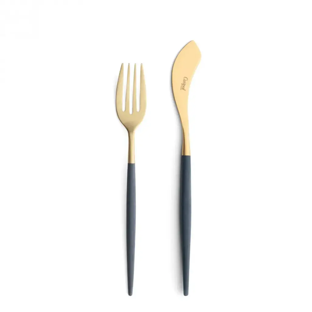 Mio Blue Handle/gold Matte Oyster Fork 6.9 In (17.5 Cm)
