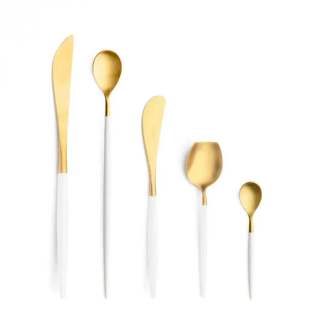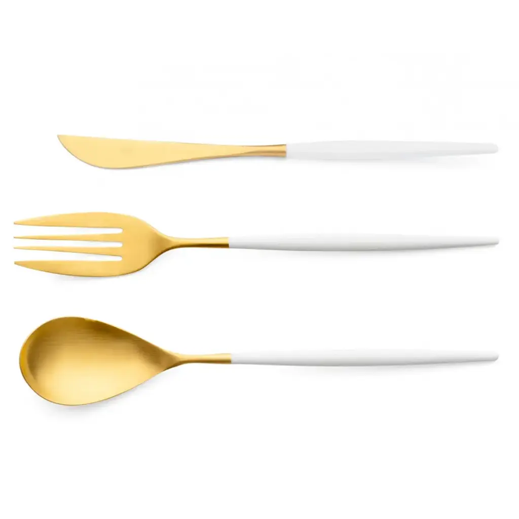 Mio White Handle/gold Matte Oyster Fork 6.9 In (17.5 Cm)
