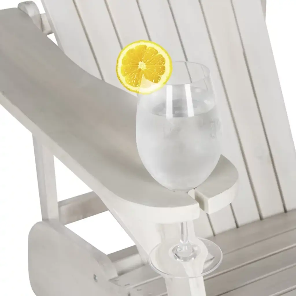 The Mirando Wine Glass Holder Adirondack Chair from Alder & Ore puts a fun twist on a timeless classic. Designed with a built-in glass holder on the right armrest, it’s perfect for sipping and sitting as you relax outdoors. Made from eco-friendly acacia wood with galvanized steel hardware, this durable chair is built to withstand the elements at a nice angle while maintaining its rustic modern appeal. Ideal for transitional spaces, it combines comfort and practicality with classic charm. Assembly required; made in Vietnam.