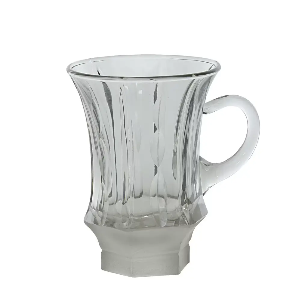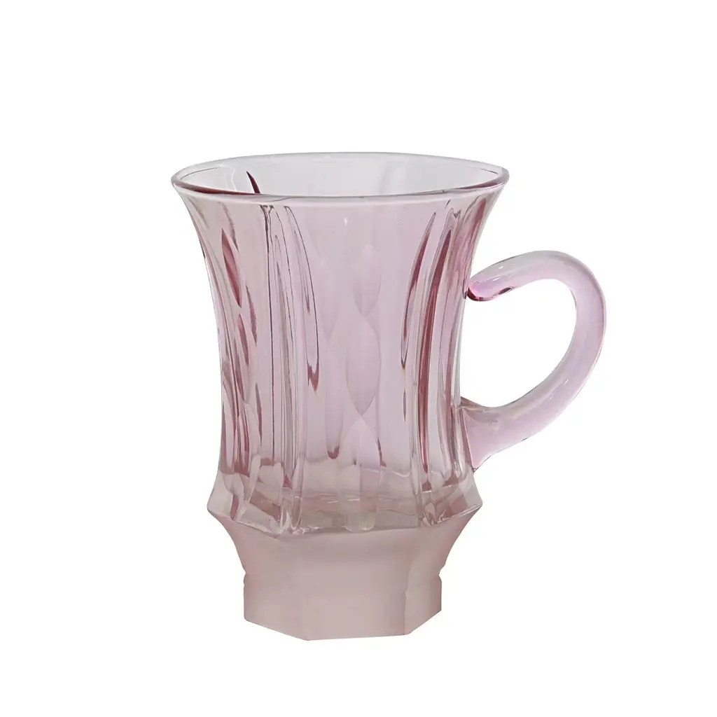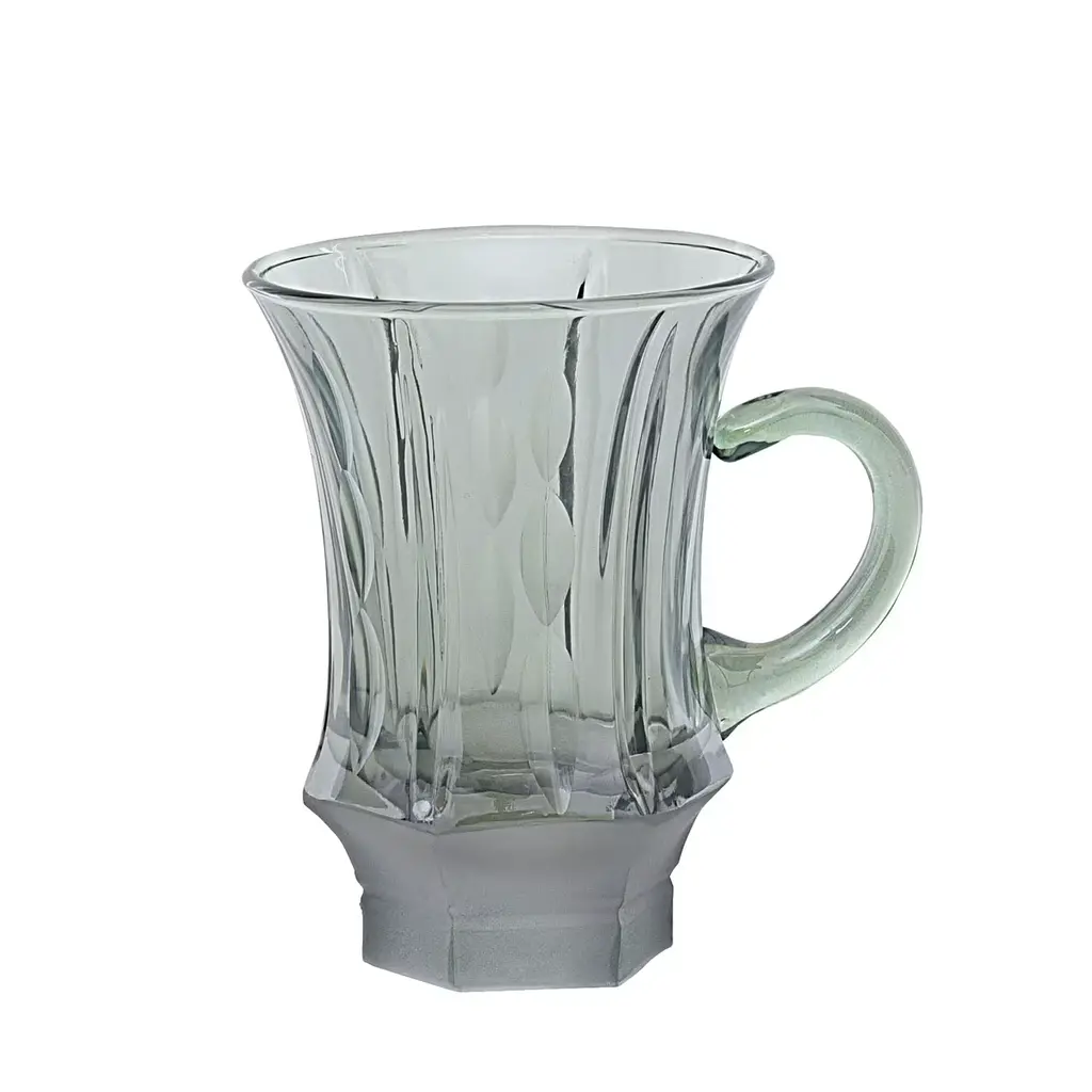This exquisite set of six espresso cups will be a refined and elegant display on any dining or coffee table, infusing it with subtle sophistication. A masterful showcase of craftsmanship, each cup is handcrafted of sandblasted glass boasting a sleek and textured shape enhanced with a delicate and translucent hue from the six-hued color palette defining this set.