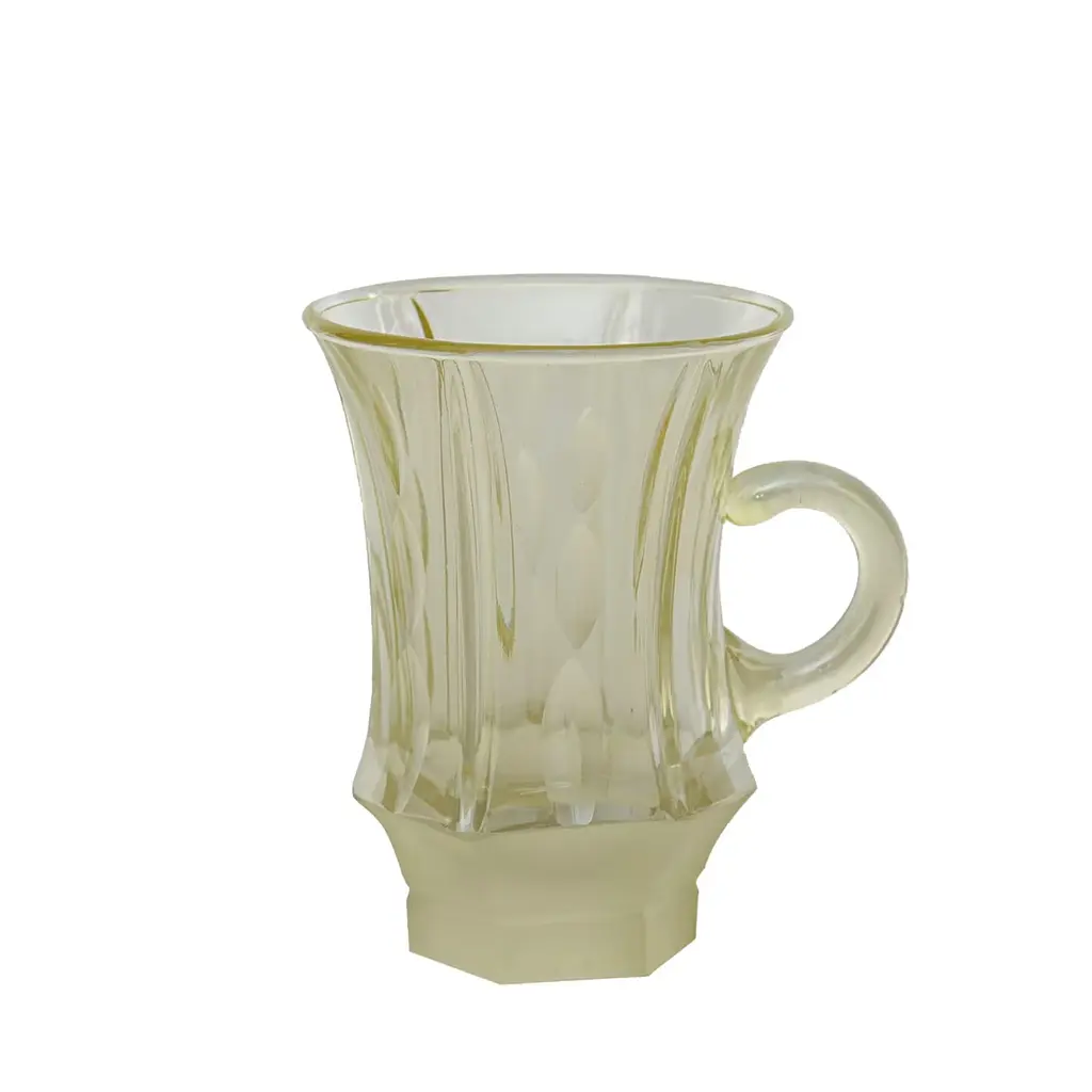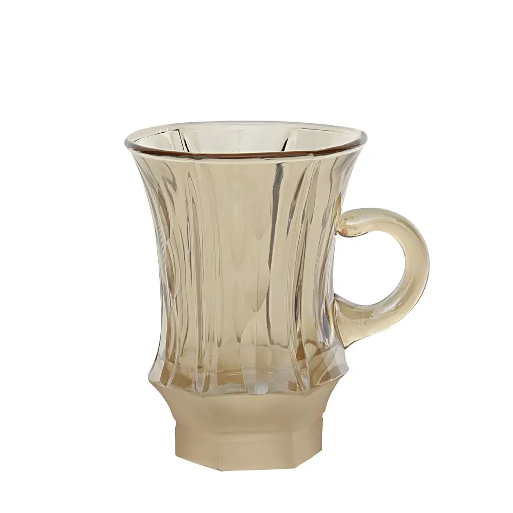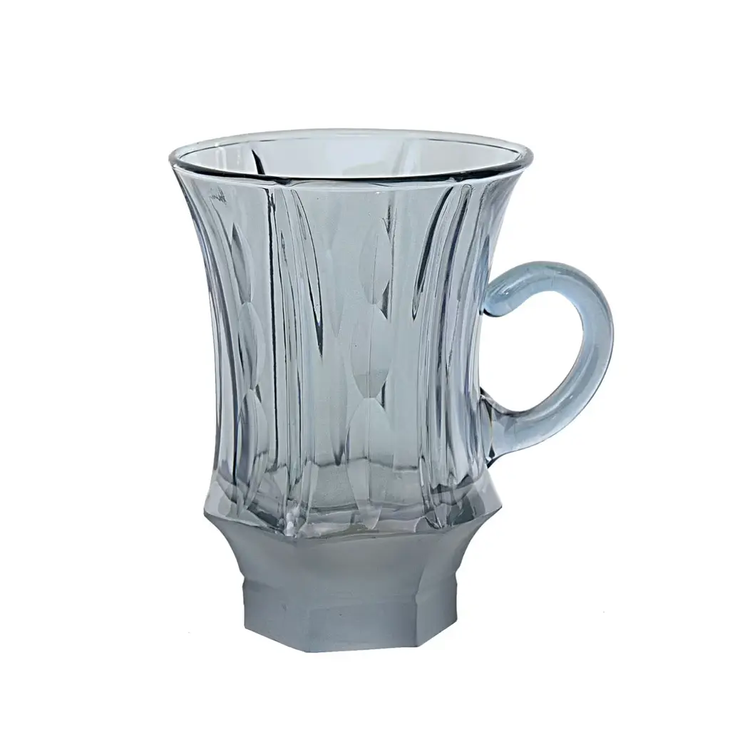 This exquisite set of six espresso cups will be a refined and elegant display on any dining or coffee table, infusing it with subtle sophistication. A masterful showcase of craftsmanship, each cup is handcrafted of sandblasted glass boasting a sleek and textured shape enhanced with a delicate and translucent hue from the six-hued color palette defining this set.