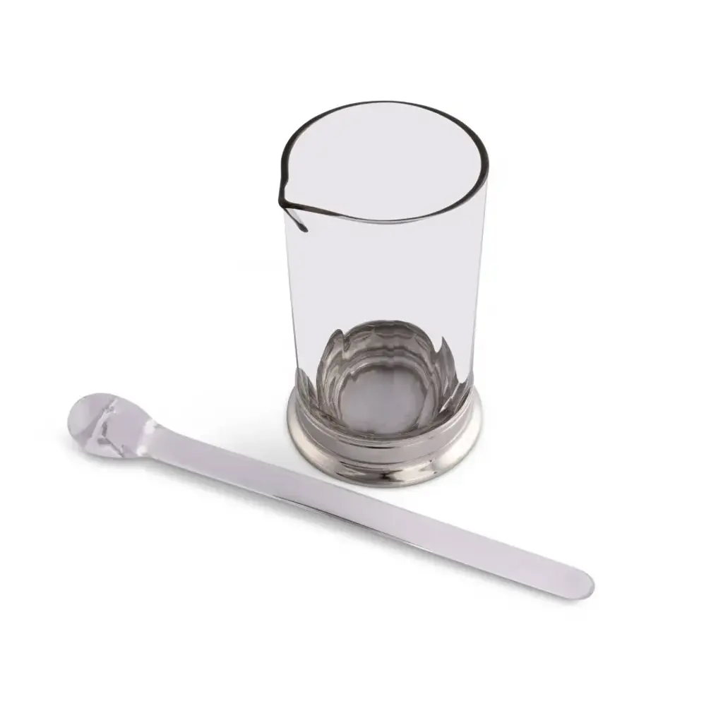 These Vagabond House Pitcher and Stirrer is a handmade set of premium glassware to set off every cocktail hour. This stunning pitcher holds up to 24 ounces, perfectly sized for preparing classic and specialty martinis. The stirrer is the perfect accessory to properly mix your cocktail. It is clean, sanitary and frankly elegant. The mixing glass diamond and wedge cuts with the comforting weight of Vagabond House hand-crafted glass; enhancing the aesthetics of any drink you serve in it. The pewter base crates a warm classic old-world charm to the mixing glass. Vagabond House is a family-owned American company specializing in fine pewter tableware, servingware and giftware. Largely inspired by nature, their exclusive products are designed to be unique, functional heirlooms for those who seek to express tradition and style in both family and formal entertaining.
