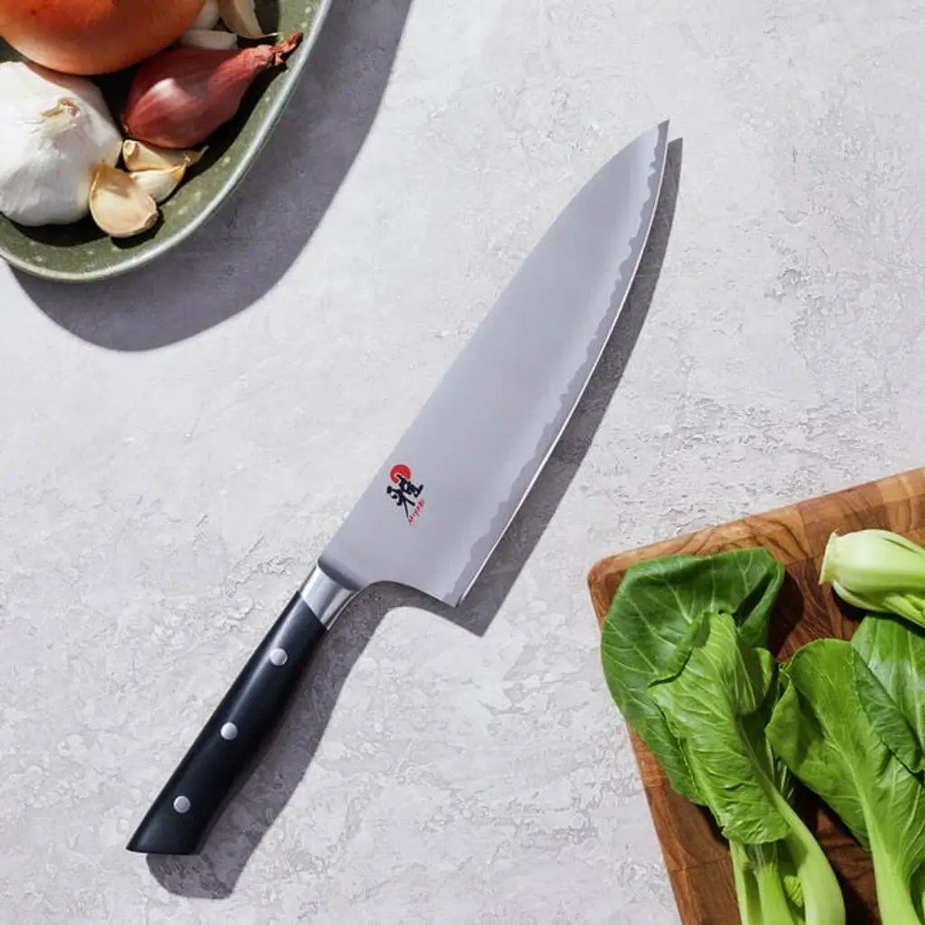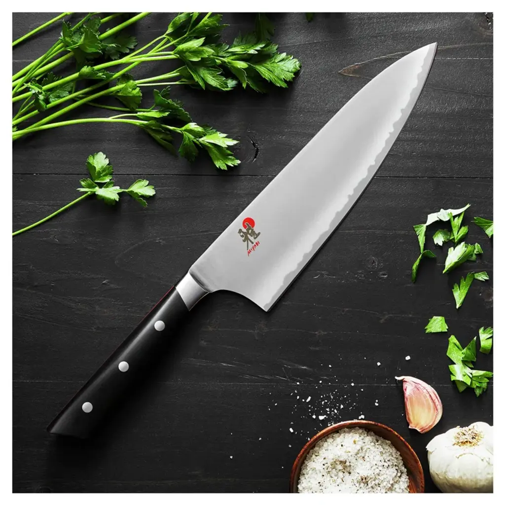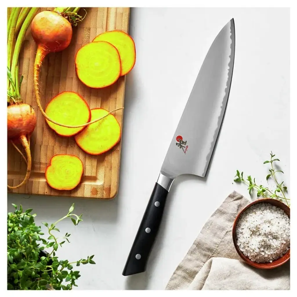 Crafted in the samurai sword-making capital of the world, Seki, Japan, Miyabi merges Japanese craftsmanship with German engineering expertise to produce the ultimate kitchen knives. Experience the beauty of sharpness with the Evolution Santoku Knife. Beautifully polished to a mirror finish, the ice-hardened blades are extremely durable and corrosion-resistant. Made from revolutionary fine carbide FC61 steel, these knives offer the signature sharpness for which Japanese knives are known. The ergonomic, triple-rivet handle encourages fatigue-free cutting and supports both Western chopping and Asian rocking cuts. With their utmost attention to detail, skilled artisans ensure each knife is of the finest caliber. It takes more than 100 steps and 42 days to create one knife worthy of the Miyabi brand.