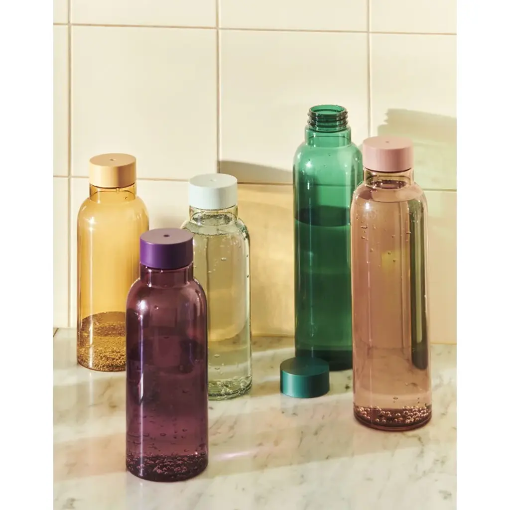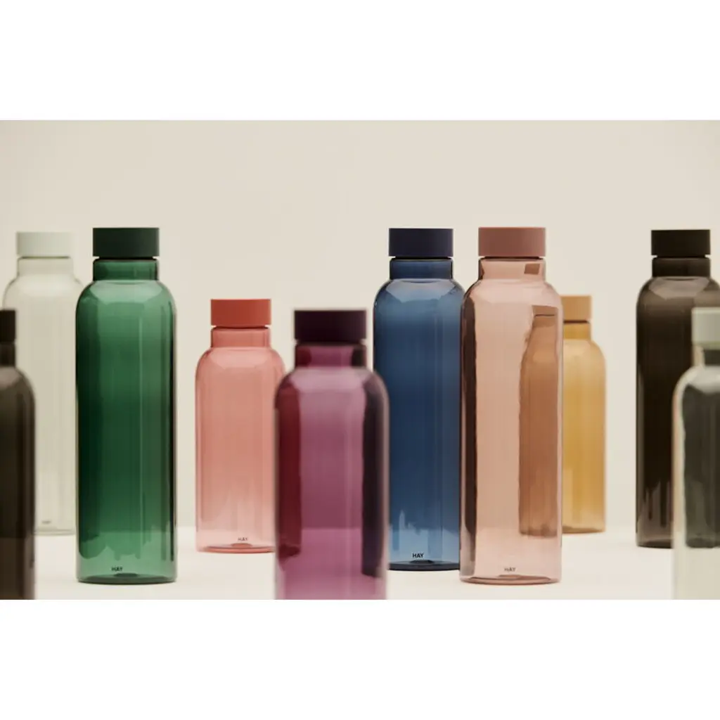 The Miz water bottle is a perfect example of designer Naoto Fukasawa's approach to creating "supernormal" everyday products, reimagined in surprising and intriguing ways. Fukasawa emphasizes that the purpose of an object should be immediately apparent, and this is certainly true of the Miz water bottle he designed for the Danish brand HAY. The bottle's slender, narrow shape fits comfortably in the hand, and its translucent surface subtly reveals the liquid inside. Made from durable recycled PET, the Miz water bottle is finished with a cap that matches the color of the bottle, completing its sleek look.