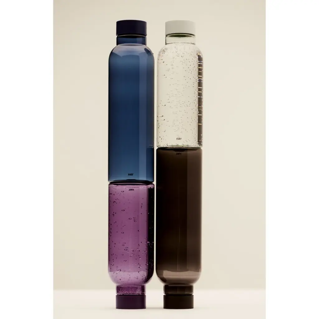 The Miz water bottle is a perfect example of designer Naoto Fukasawa's approach to creating "supernormal" everyday products, reimagined in surprising and intriguing ways. Fukasawa emphasizes that the purpose of an object should be immediately apparent, and this is certainly true of the Miz water bottle he designed for the Danish brand HAY. The bottle's slender, narrow shape fits comfortably in the hand, and its translucent surface subtly reveals the liquid inside. Made from durable recycled PET, the Miz water bottle is finished with a cap that matches the color of the bottle, completing its sleek look.