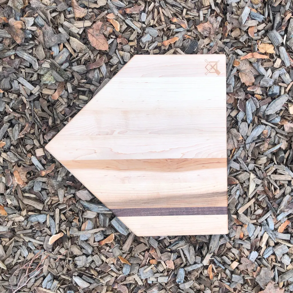 The Baseball BBQ Home Plate cutting board was crafted for classic cookouts! Made in the USA, the Home Plate cutting board sports an edge-grain construction with solid Western Maple and a Black Walnut accent. The 12" x 12" hardwood cutting board captures the iconic center of baseball action with its home plate design. Emblazoned with your favorite MLB Baseball team logo, this board is perfect for every baseball fan. Whether you're prepping food for the grill or serving friends at a playoff party, nothing shows your love for baseball like the Home Plate cutting board. • Hardwood Western Maple with solid Black Walnut accent. • Handcrafted, rounded edge grain construction. Reversible sides. • Due to the handcrafted nature of this product, each Home Plate cutting board may have slight variation in the natural wood color and design. • Laser-engraved logo depicting your favorite MLB team. • Home Plate Dimensions: Length: 12" x Width: 12" x Thickness: 0.8"