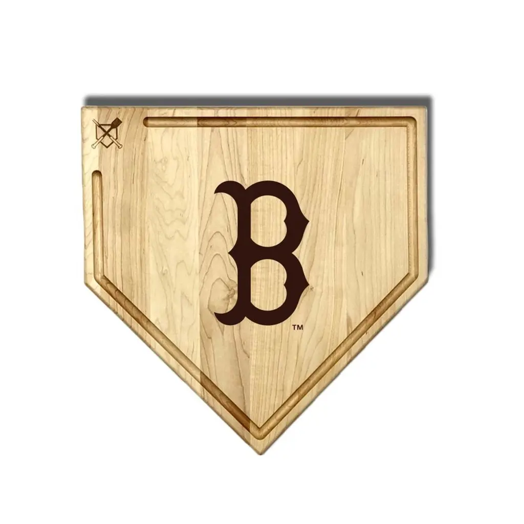 Mlb 17-Inch Wooden Home Plate Cutting Board W/trough, Boston Red Sox - Brown