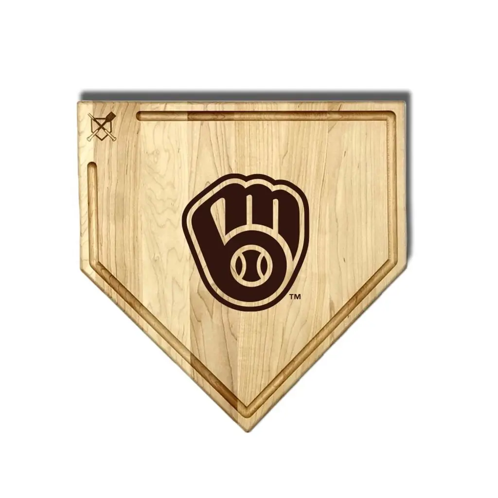 Mlb 17-Inch Wooden Home Plate Cutting Board W/trough, Milwaukee Brewers - Brown