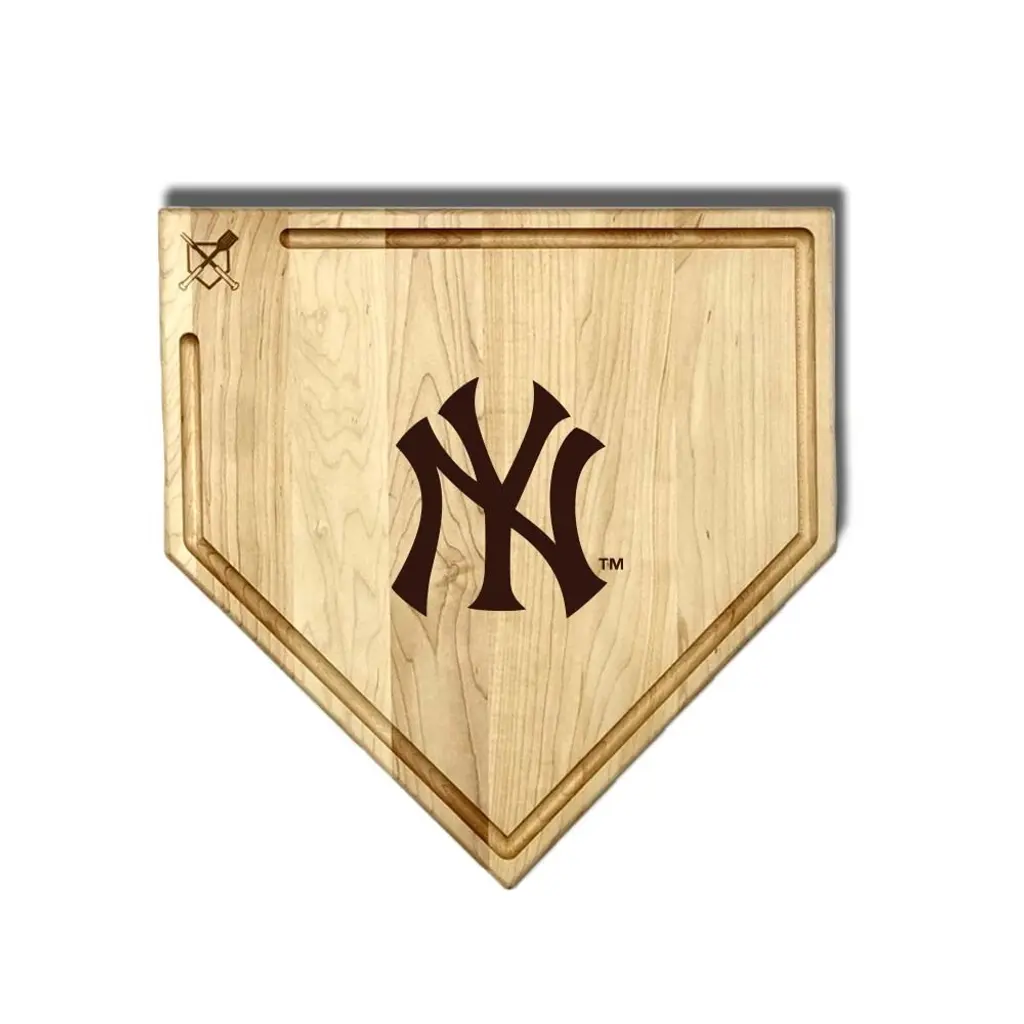 Mlb 17-Inch Wooden Home Plate Cutting Board W/trough, New York Yankees - Brown