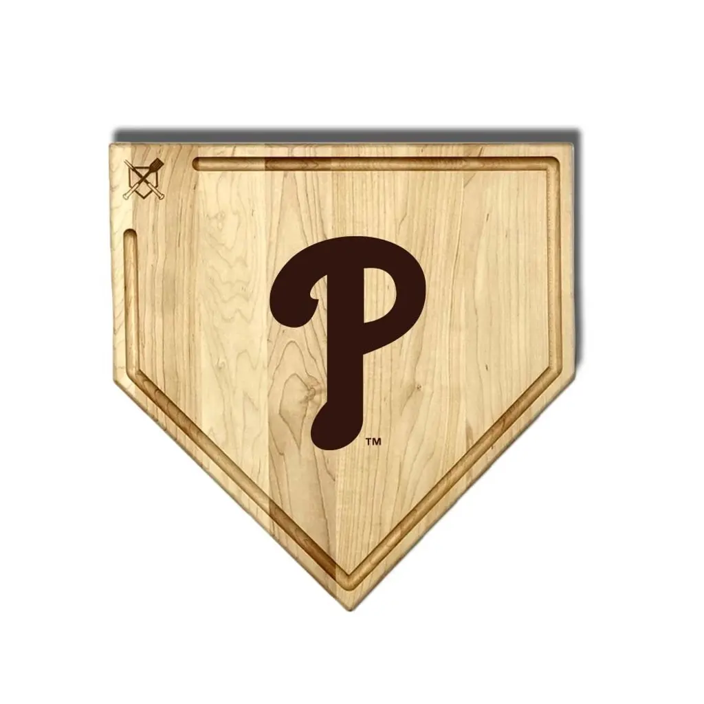 Mlb 17-Inch Wooden Home Plate Cutting Board W/trough, Philadelphia Phillies - Brown
