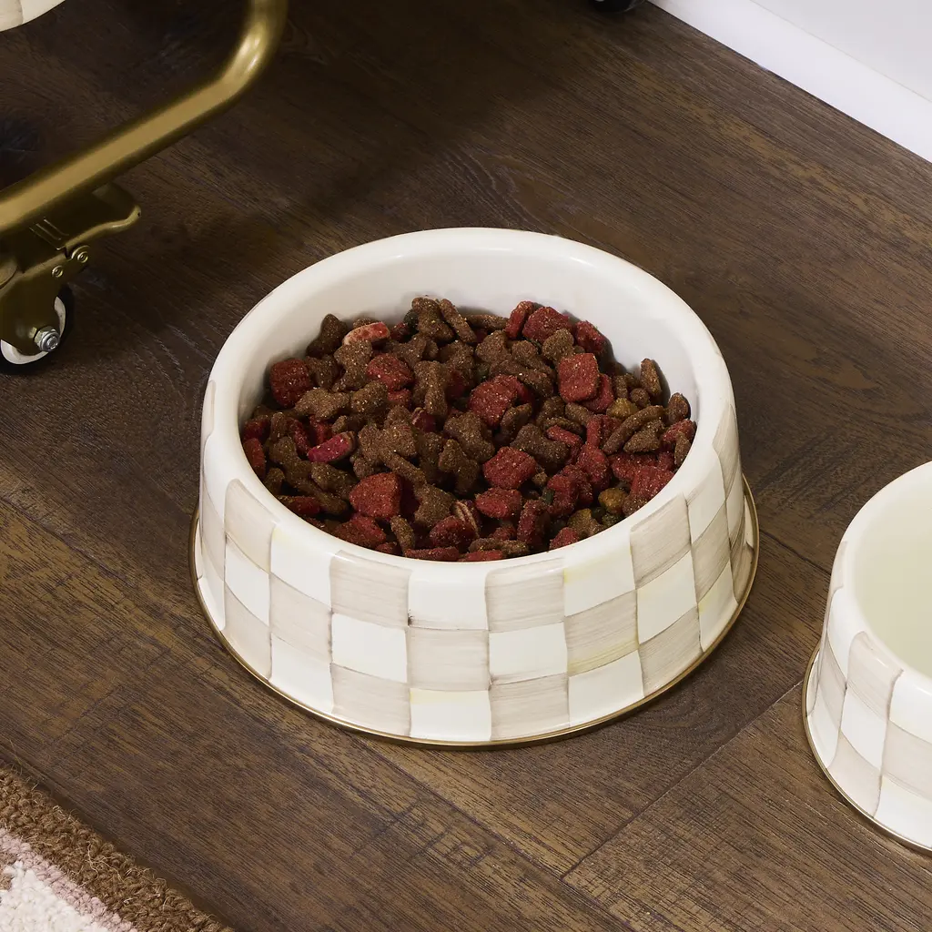 This season, it's all about checks for Spot! For your furry friends, choose the Mocha Check Large Pet Dish. The heavy-gauge steel underbody is strong enough to withstand the mealtime antics of the hungriest hounds, and hand-painted Mocha Checks are fashionable enough for the choosiest canines. With its coffee-inspired hues and painterly touch, we've yet to find a pet that doesn't look good with Mocha Check.