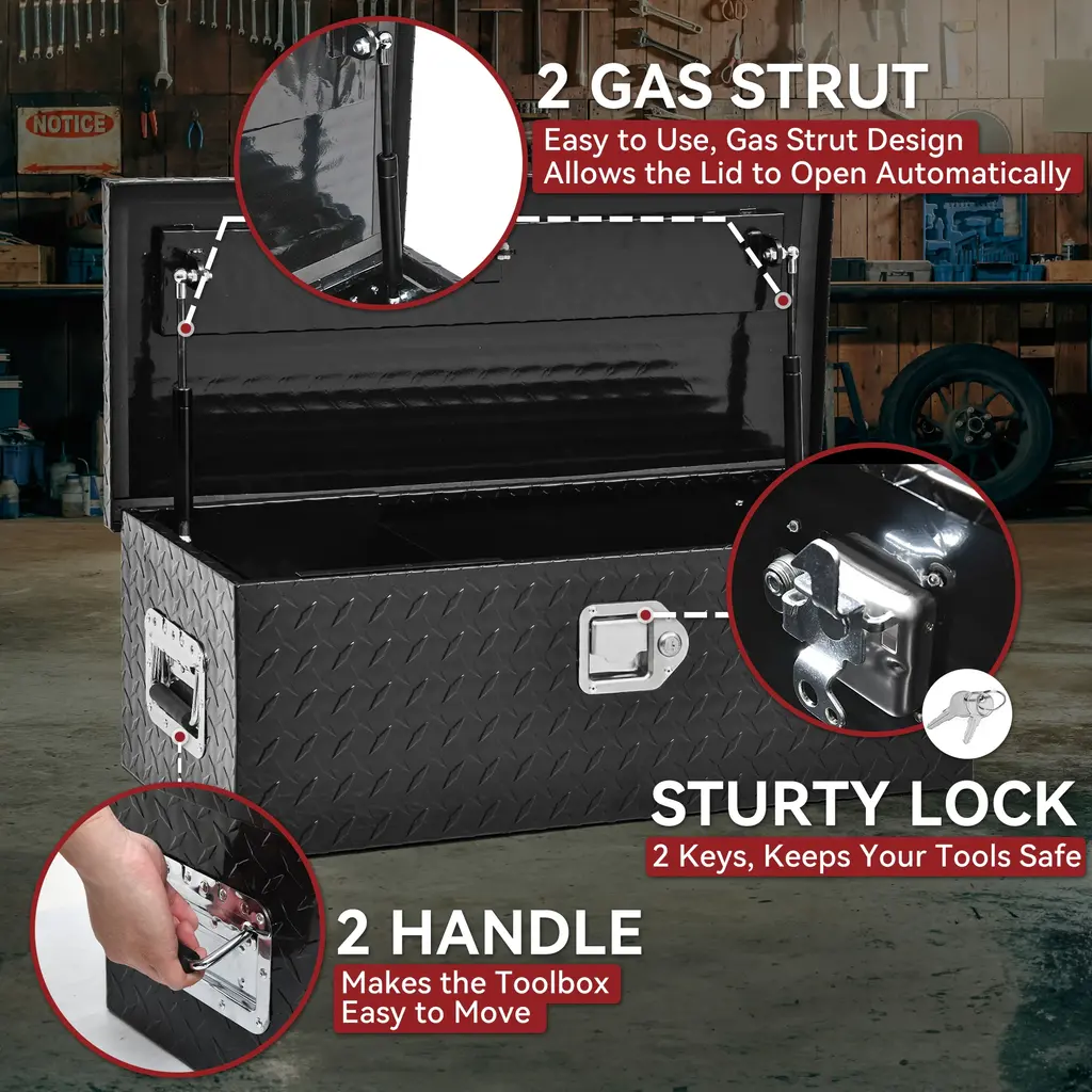 Modern 30"aluminum Tool Box Diamond Plate Chest Box - 30" - Black