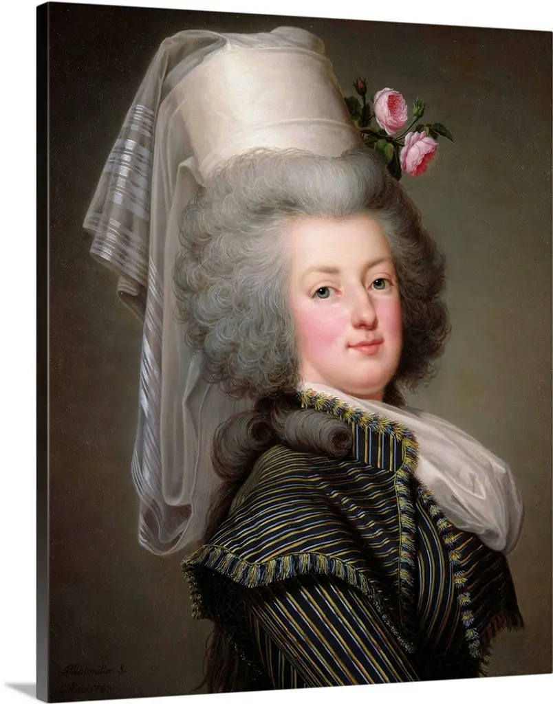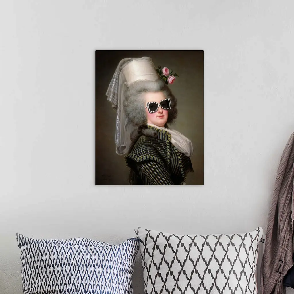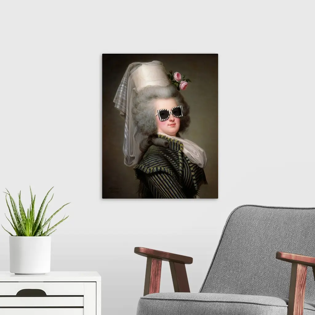 A modern version of a portrait of Marie-Antoinette in sunglasses.