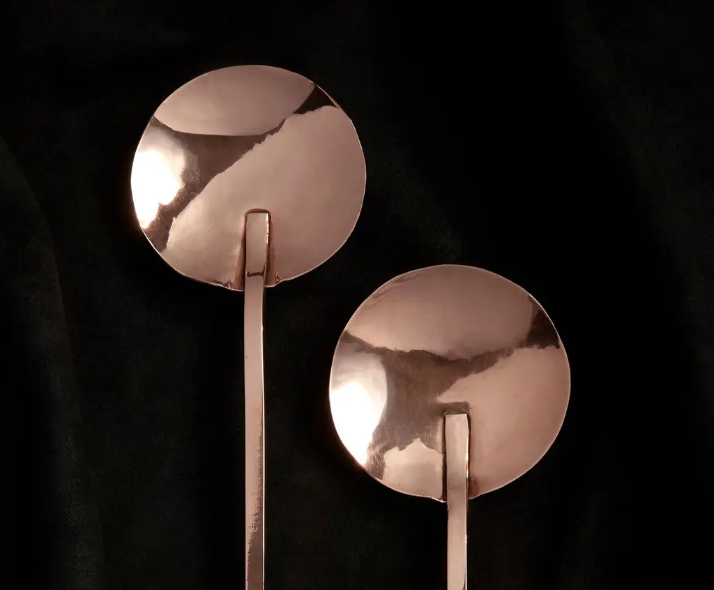 Modern Hand Forged, Formed, And Polished Copper Serving Spoons
