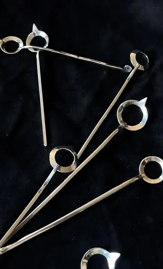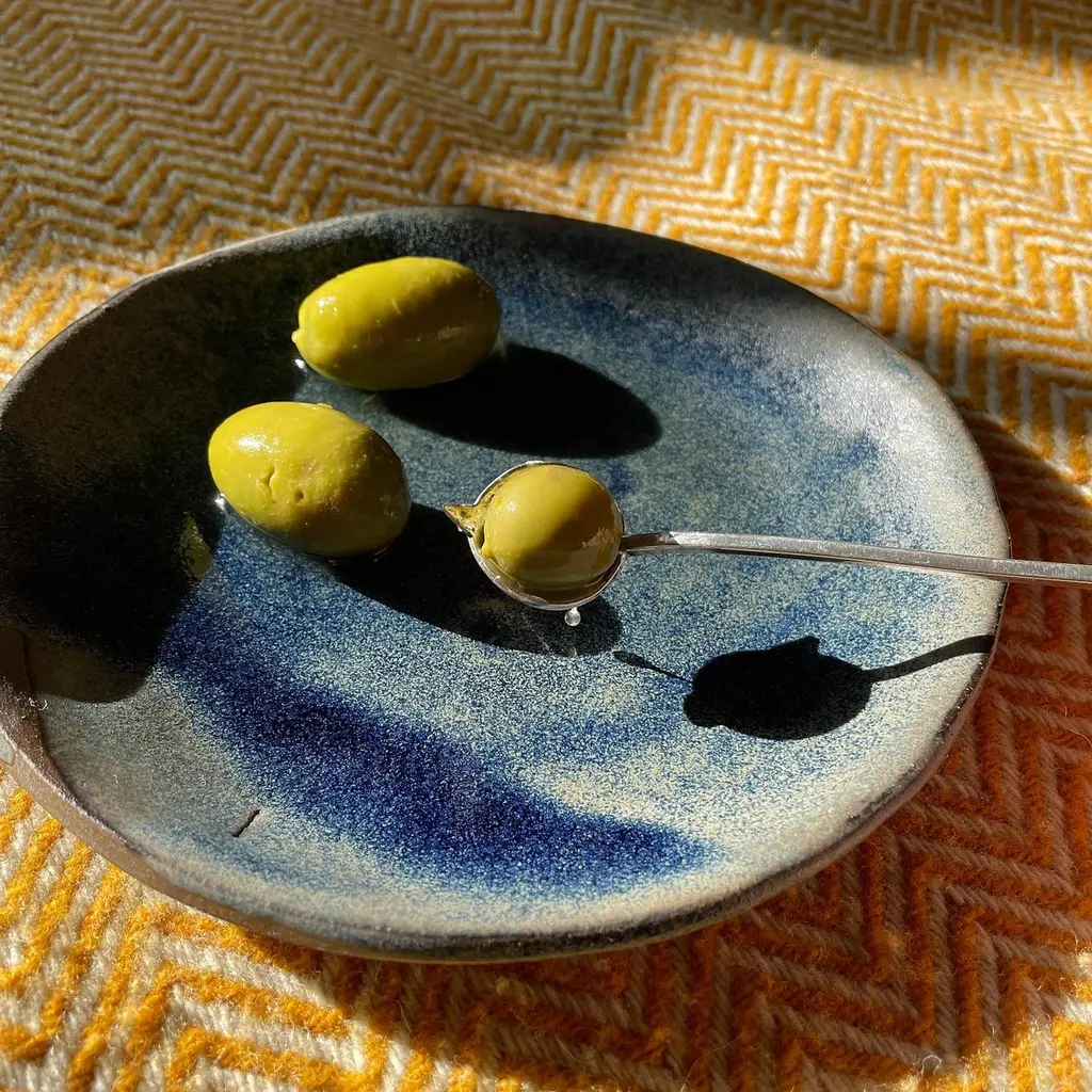 This sterling silver Olive Spoon is used to serve olives without them drying out. An elegant touch to serving the savory fruit of the Mediterranean, it will elevate any Taking a note from historical dining when each guest would have an individual utensil for olives during an olive course, this update allows you to serve olives in any form. Fabricated in sterling silver and then finished by hand in his Brooklyn, NY studio, this piece is the creation of silversmith and jewelry designer Heath Wagoner under HW. Studio. The basin is cut by hand, soldered, forged for hardness, and brought to a mirror finish. It's a modern update to the traditional silver setting and features a sleek minimal design.HW. Studio's work is meant to re-invigorate modern dining while employing jewelry techniques and craft to create objects that are jewelry for dining and for the table.