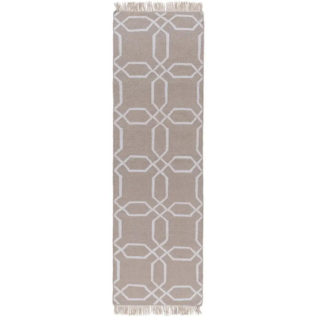 Modern Swedish Style Handmade Gray And Beige Geometric Designed Wool Runner