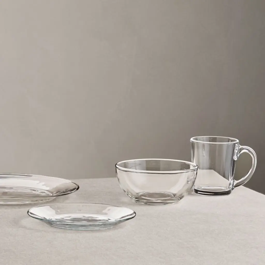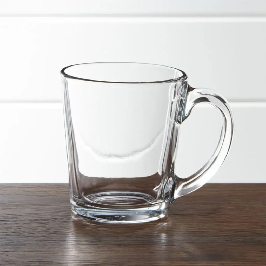 Enjoy tea, coffee or cocoa in our classic clear glass handled mugs. Suitable for all beverages hot and cold, this set of eight glass mugs is particularly perfect for serving an Irish Coffee topped with fluffy whipped cream. Our simply styled glass mugs work well with both of our clear glass dinnerware collections.