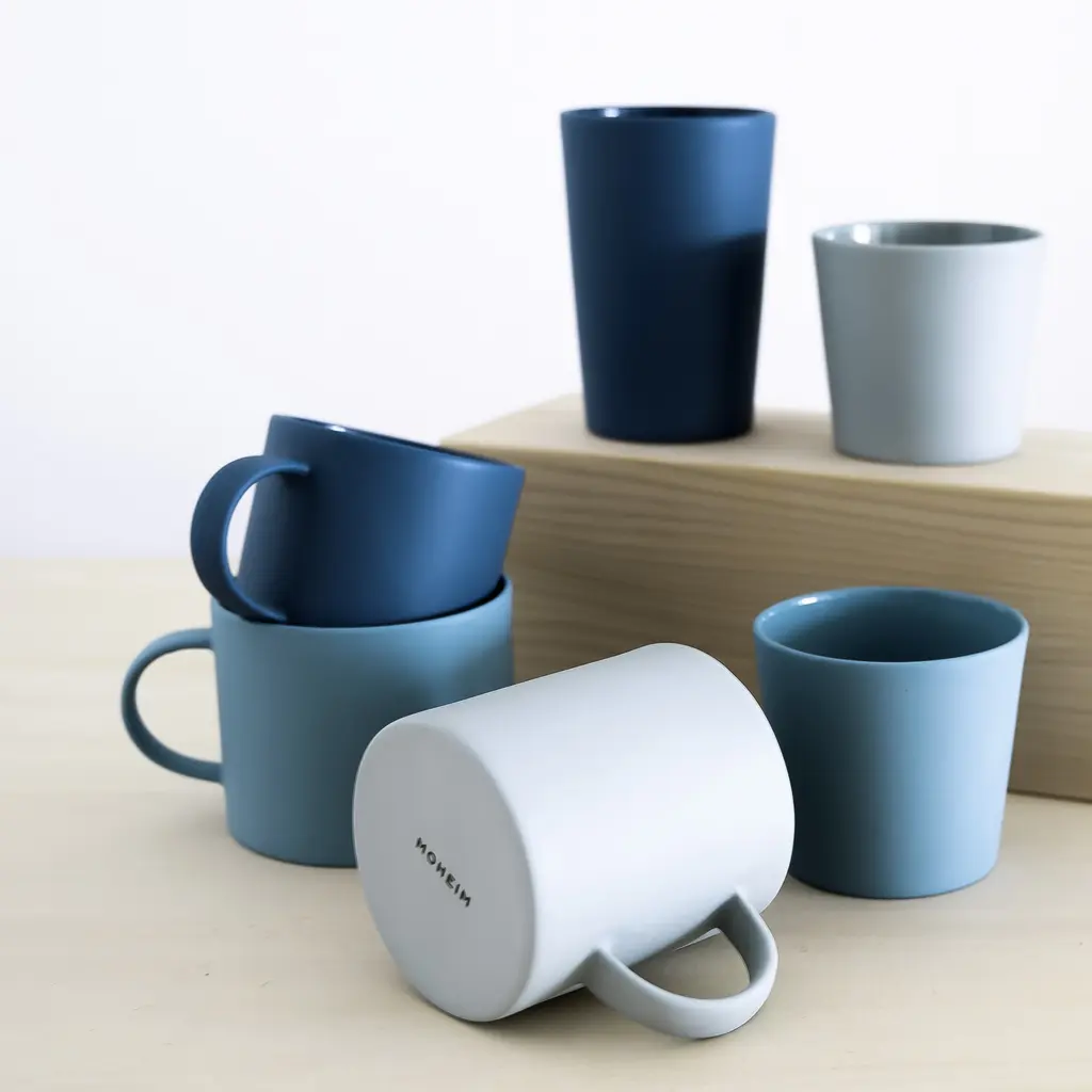 The Moheim Stoneware collection designed by Shigeichiro Takeuchi is an everyday use tableware. The collection features a nice contrast between the glossy glazed finish of the inside and the matte finish of the outside. The Moheim mugs are part of the stoneware collection that includes tumblers, plates and bowls. You can create your own tableware set mix matching colors, creating an unique dining experience. The Stoneware collection by Moheim is finely handcrafted by high skilled artisans, it comes in 7 dusty colors; sand, gray, pink, turquoise, blue, light blue and black.