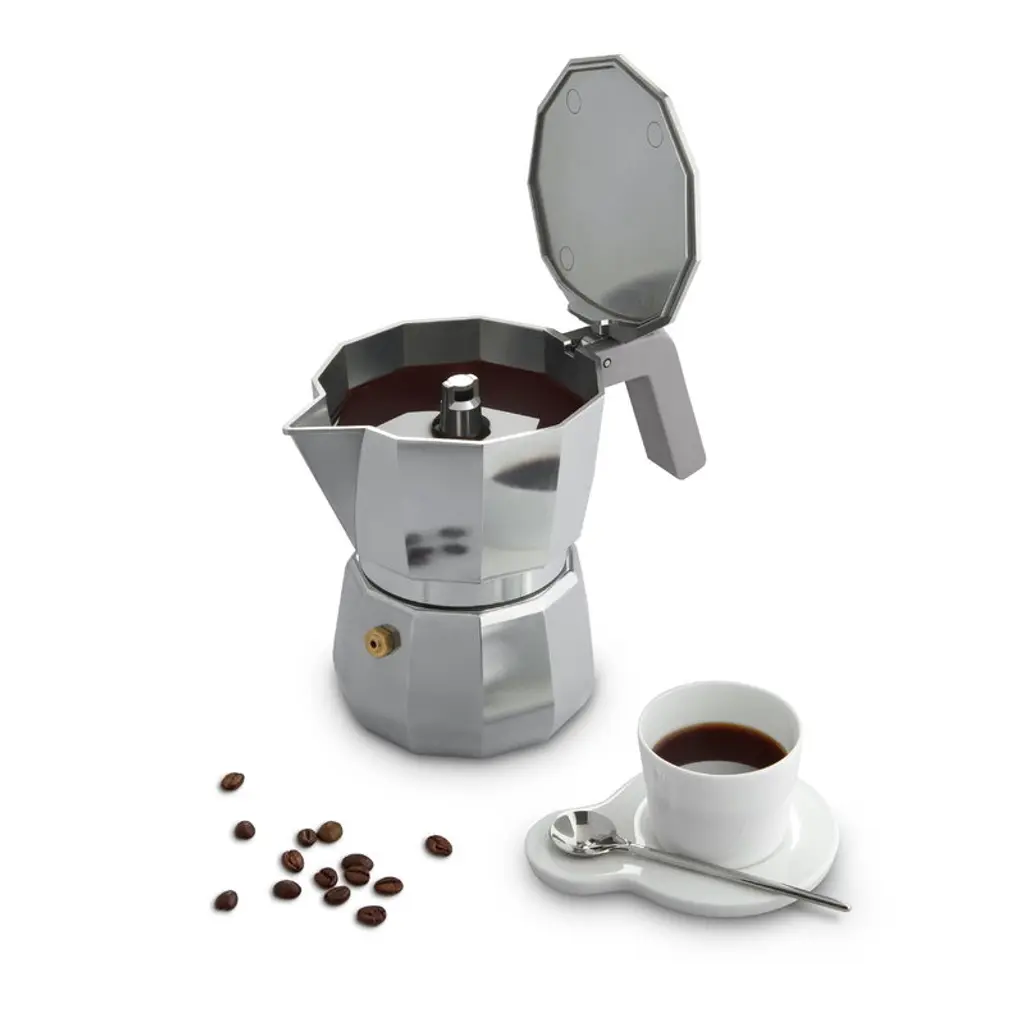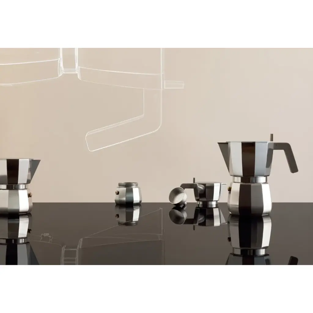 The Moka espresso maker by Alessi, designed by David Chipperfield, is a reinterpretation of a design classic recognized by all coffee lovers. The shape of the espresso maker manages to be simultaneously familiar and innovative – the designer has added details to the product that make the everyday object and icon of the Italian culture even more practical. In Italian coffee shops espresso is served in a warm cup to prevent it from cooling too quickly. This is why the lid of the Moka espresso maker is flat – you can place the cup on top of it to warm it up before pouring your coffee in it. The knob is also positioned so that you can easily lift the lid and pour the coffee using only one hand. Due to its practicality, the Moka espresso maker helps make your busy mornings easier and adds an authentic Italian feel to your dinner parties.