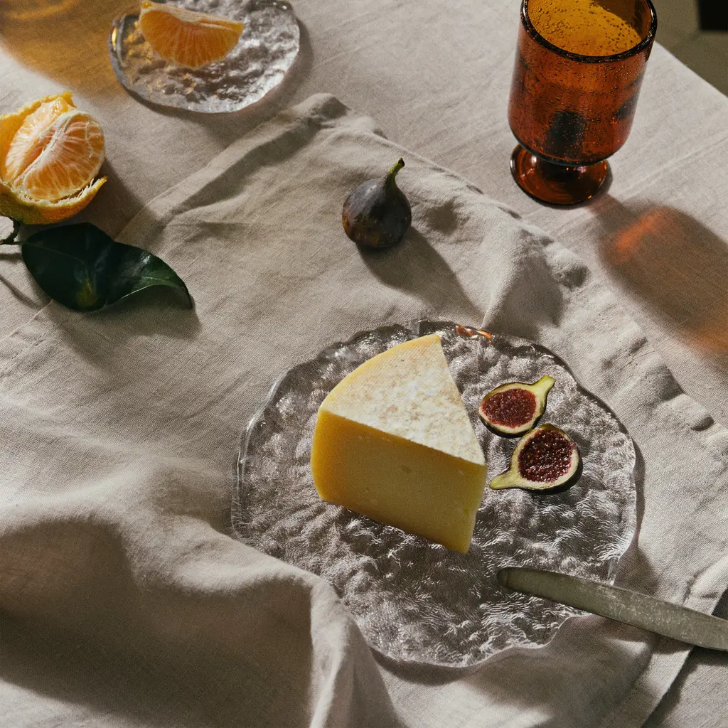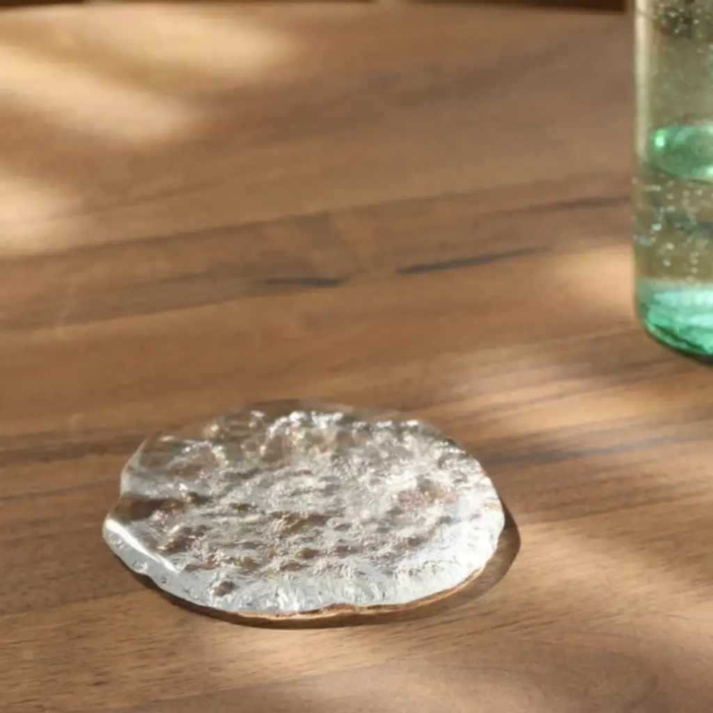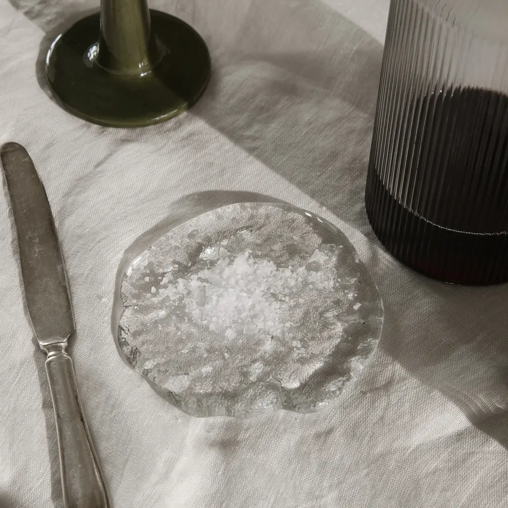 The Momento Glass Stones from Ferm Living add a touch of unexpected style to any decor. Perfect for bringing an elegant aesthetic to your home, each set of four features clear glass with a distinctive, liquid form, evoking the look and feel of melting ice. These stones will make a sophisticated statement whether set out as decor to display a favorite candle or use a unique serving platter for charcuterie or desserts. Highlights