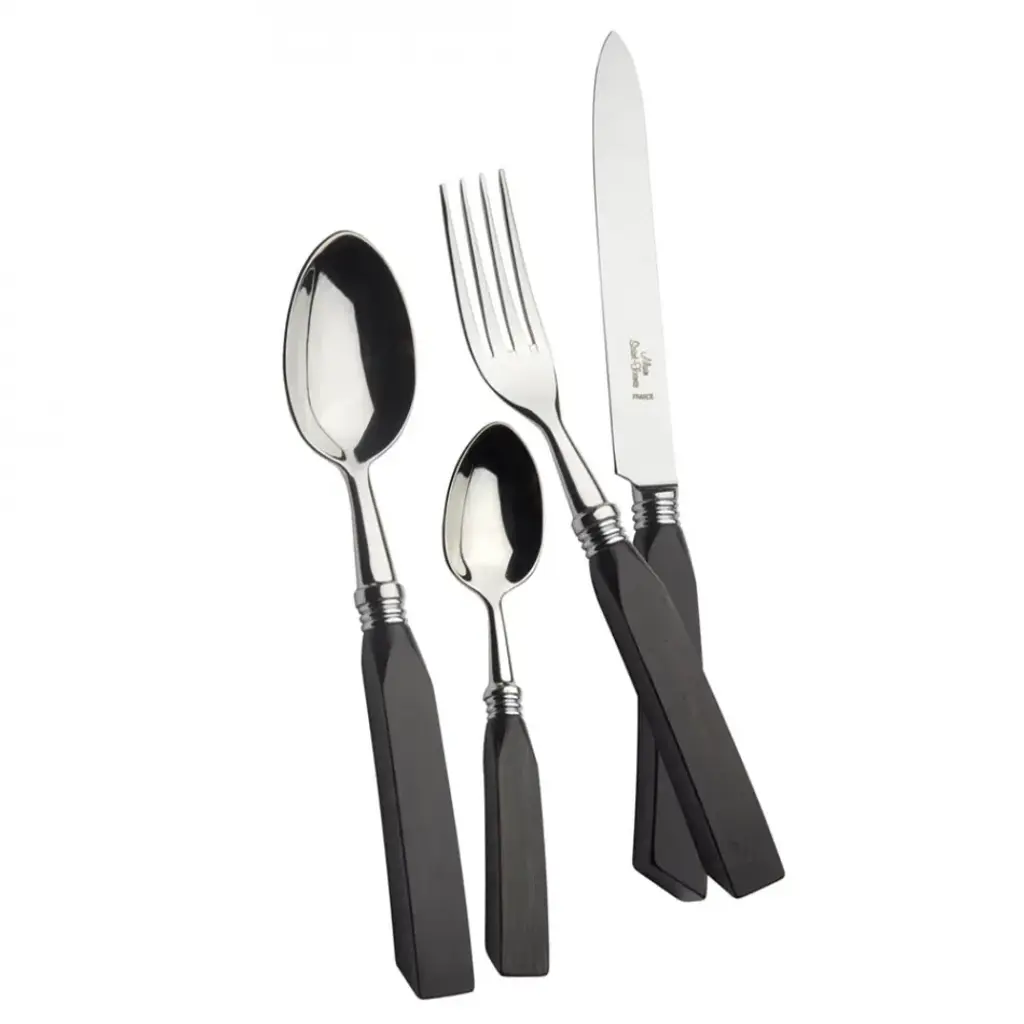 Alain Saint Joanis is a family-owned company that has been creating and manufacturing fine flatware in the purest tradition of French cutlery since 1876. These top-of-the-line collections are made with the finest quality silverplate and 18/10 stainless steel, with handles handcrafted from authentic, raw materials such as exotic woods, resins and enamels. All Alain Saint Joanis flatware is hand-assembled and hand-polished in France, and is dishwasher safe. Five-piece setting includes dinner knife, dinner fork, salad fork, soup spoon, and tea spoon.
