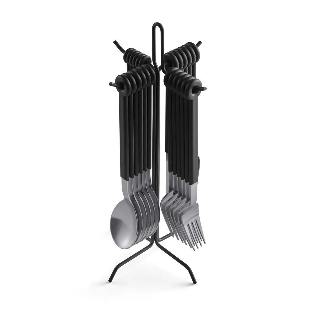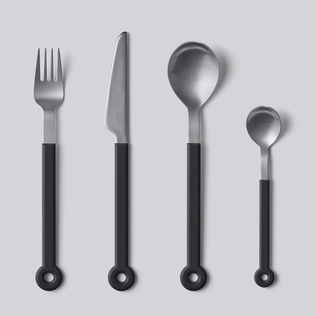 If you’re going to buy designer flatware, go all out and choose the complete Mono Ring set with the included table stand. That way, you can recreate the concept of the original series and present the flatware as it was designed to be displayed. An homage to the iconic original, the modern collection recreates the emblematic aesthetic in a state-of-the-art build. The Mono Ring Flatware Set 24 has the same cut-out circle, but features an injection molded handle that comes with a fiber glass material on the interior for stability and glass spheres for perfect balance. All of the pieces are resistant to higher temperature and dishwasher-safe. Ideal for dinner parties with friends, this set of flatware contains six pieces each of the Mono Ring fork, knife, tablespoon, and teaspoon. The Stand Anthracite completes the set.
