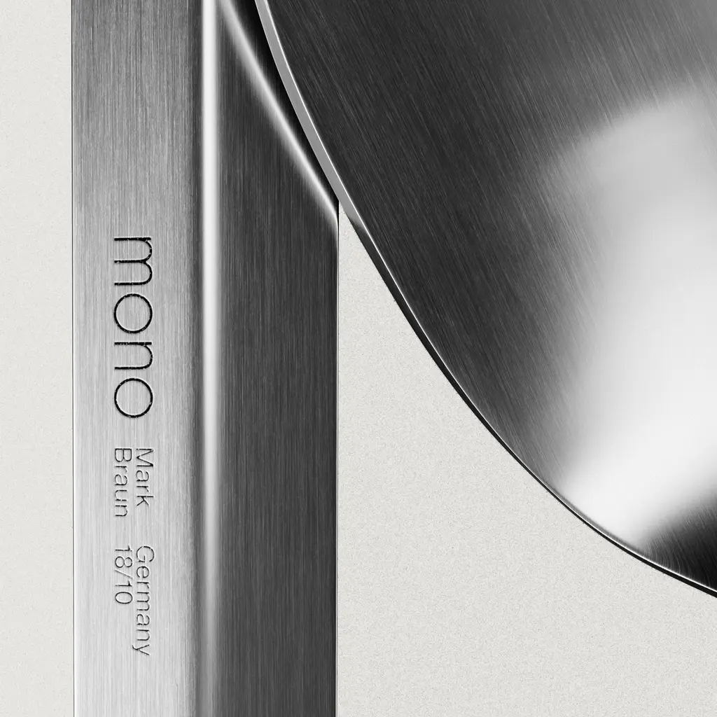 Discover the pleasure of stirring into a tea cup with the Mono V Teaspoon. Specially created to improve the dining experience in every way, the Mono V collection features V-shaped handles made from extra-thin stainless steel. To create the range, designer Mark Braun looked to disposable flatware for inspiration. Simple and comfortable to hold, the Mono V teaspoon also optimizes stability and firmness with its material-saving design. Each teaspoon comes to life in Mono’s own factory where 1.5mm thin stainless steel is stamped into the desired shape. Matte brushed, the stainless steel has a subtle texture and a smooth surface. Use this teaspoon on its own for a tea set or alongside the other flatware from the same collection.