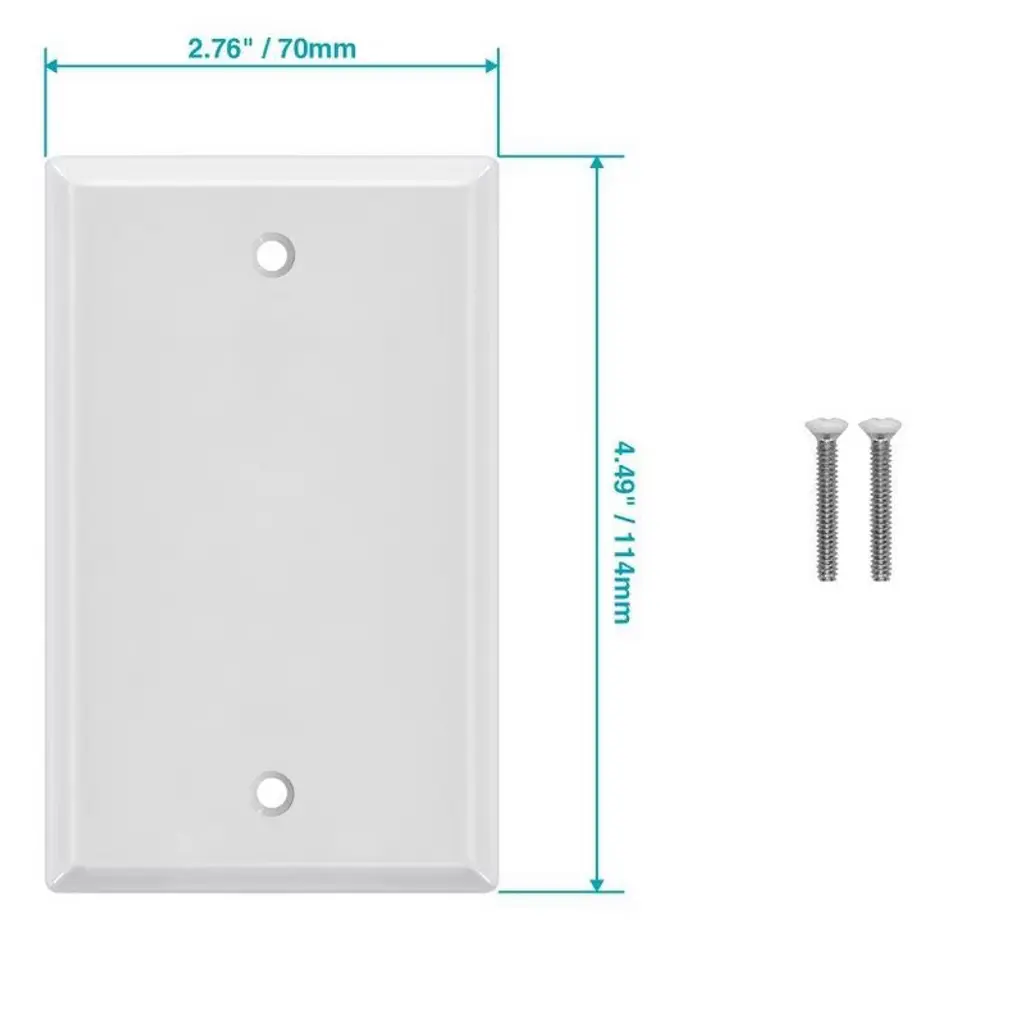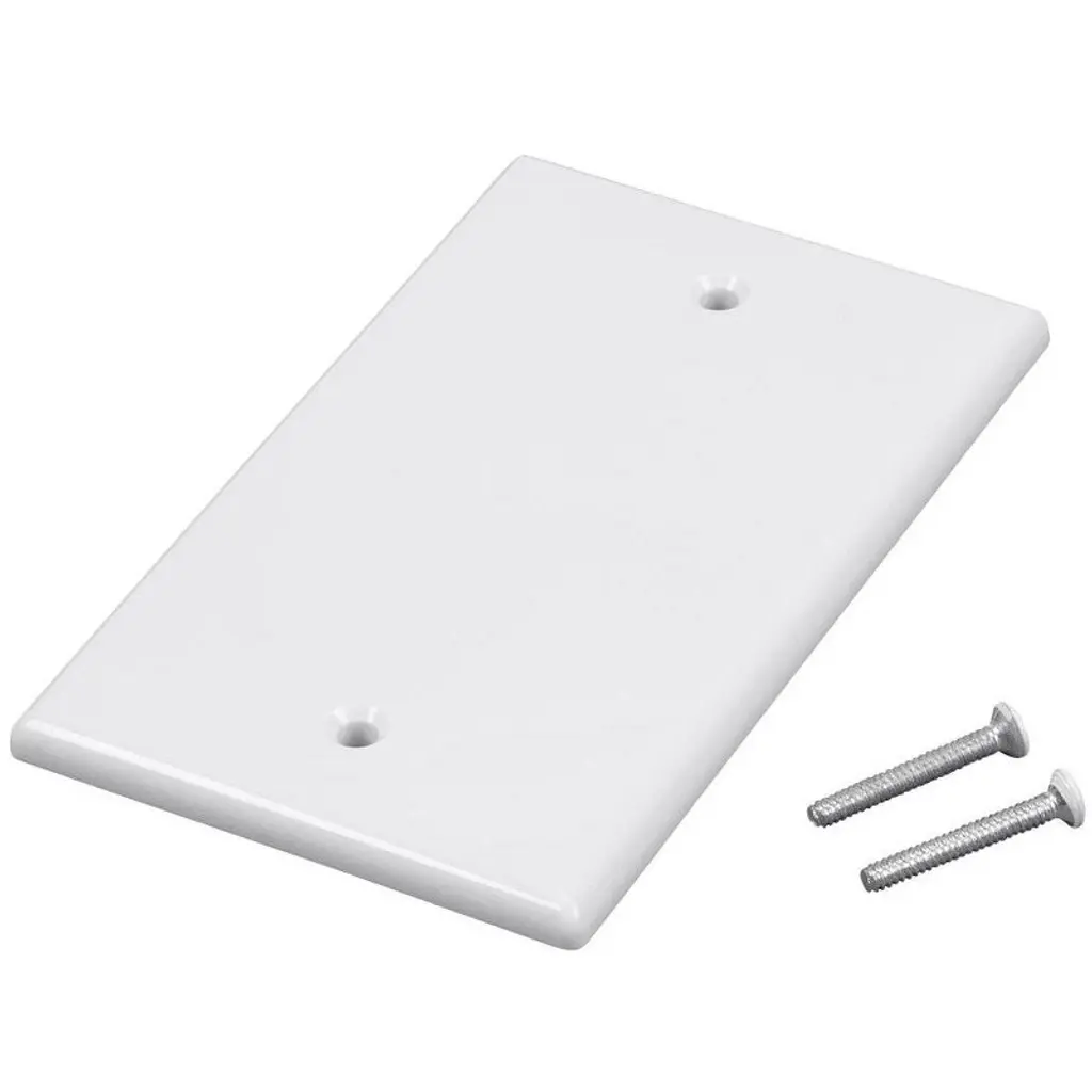 Blank wall plate to cover unused holes and remove when ready for expansion. Adds a sleek, modern appearance to any residential or commercial location. Product dimension 5.1 x 3.4 x 0.45 inches. Easy replacement with screw in installation method. 2 screws and 1 wall plate are included in the package.