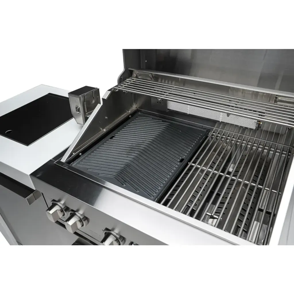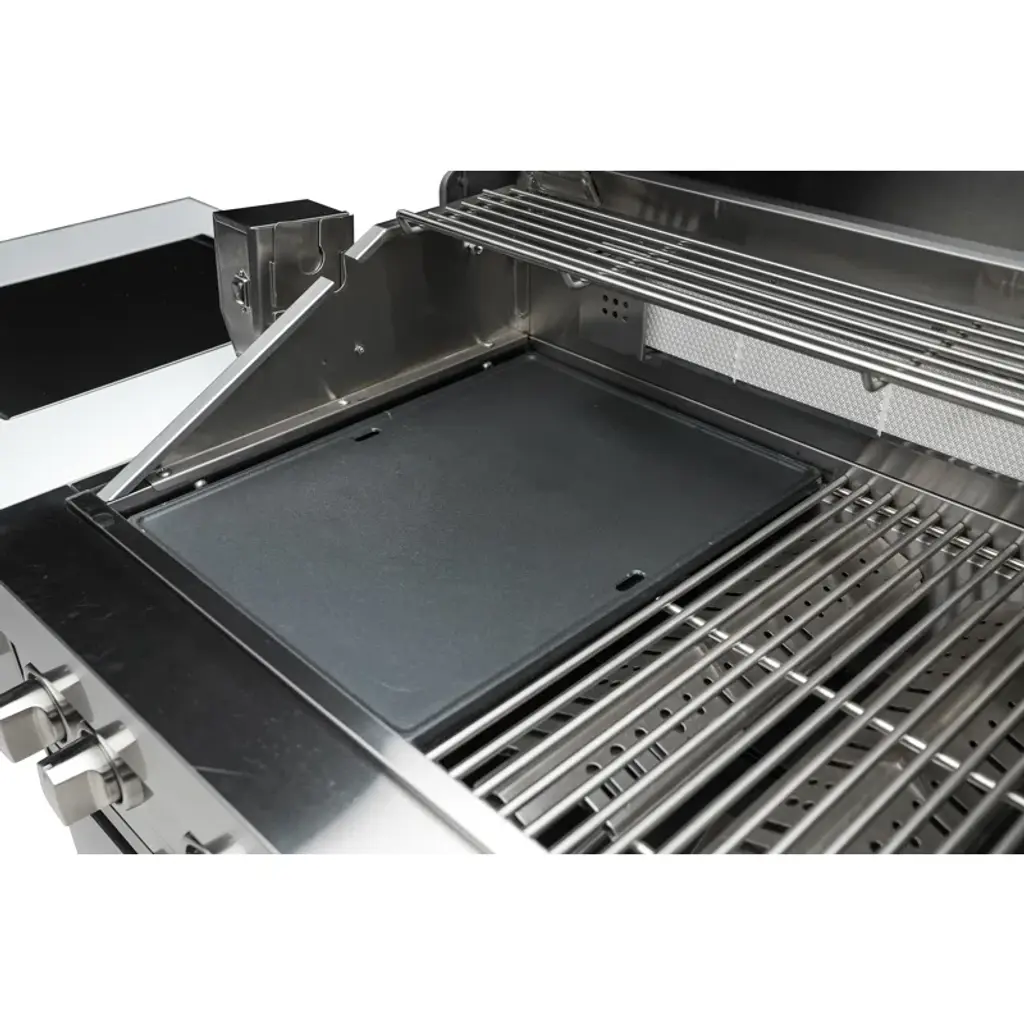 Heavy-duty universal cast iron griddle plate. Duel-sided offers you two different cooking surfaces.