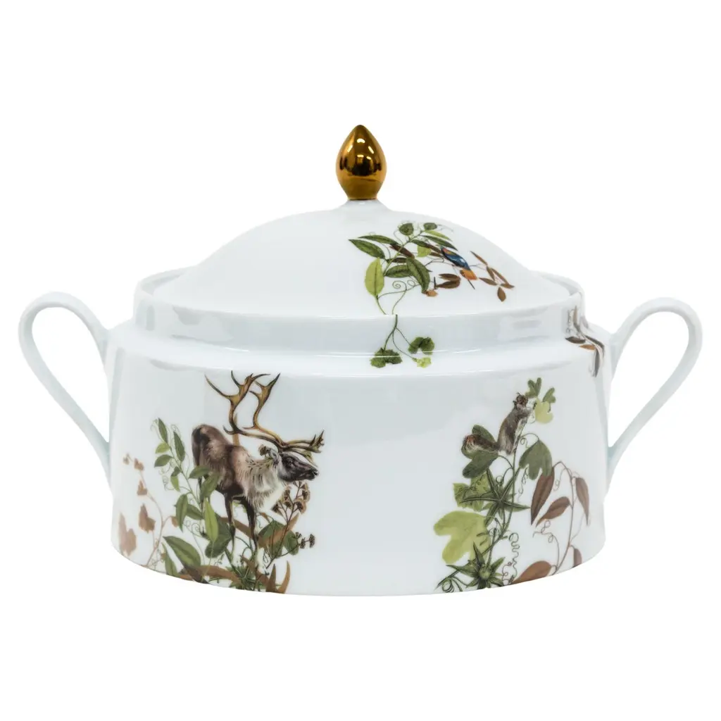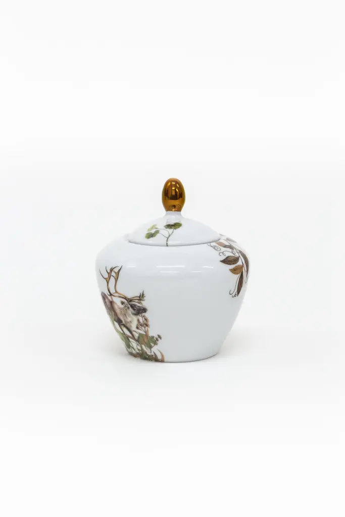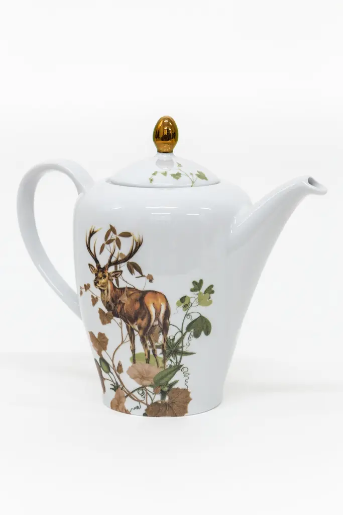 This Tea Time Set is part of the Mont Blanc Porcelain collection by Grand Tour by Vito Nesta, Inspired by the highest mountain of the Alps, the Mont Blanc, this collection is a photography of the changing seasons. Winter is here and all the animals of the woods are enjoying the glazing air, playing hide and seek among the leaves.This porcelain set consists of a milk jug, sugar bowl and teapot.The measurements of the pieces are:Milk jug 12x8cm h9cmSugar bowl diameter 10cm h11cmTeapot 26x16cm h22cm