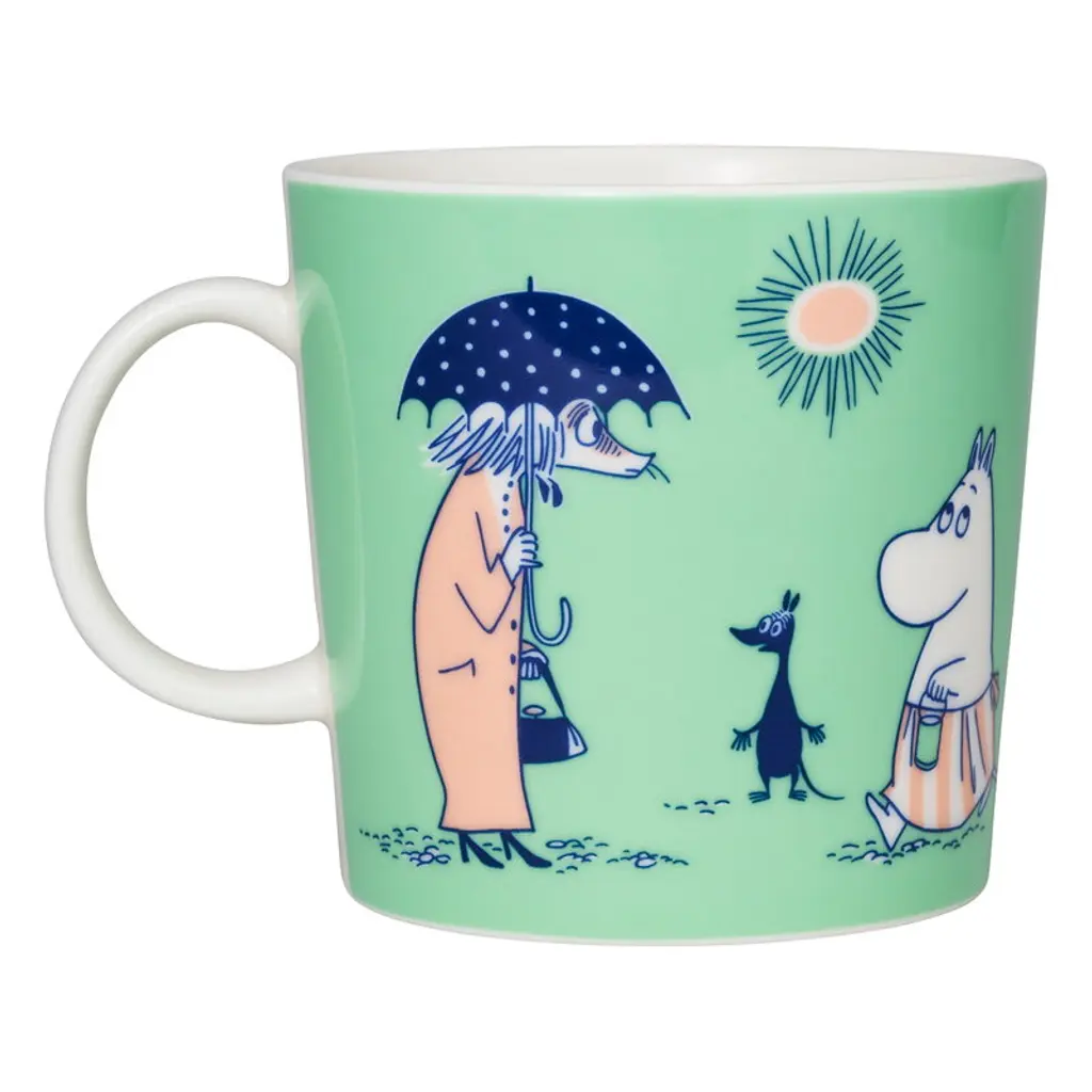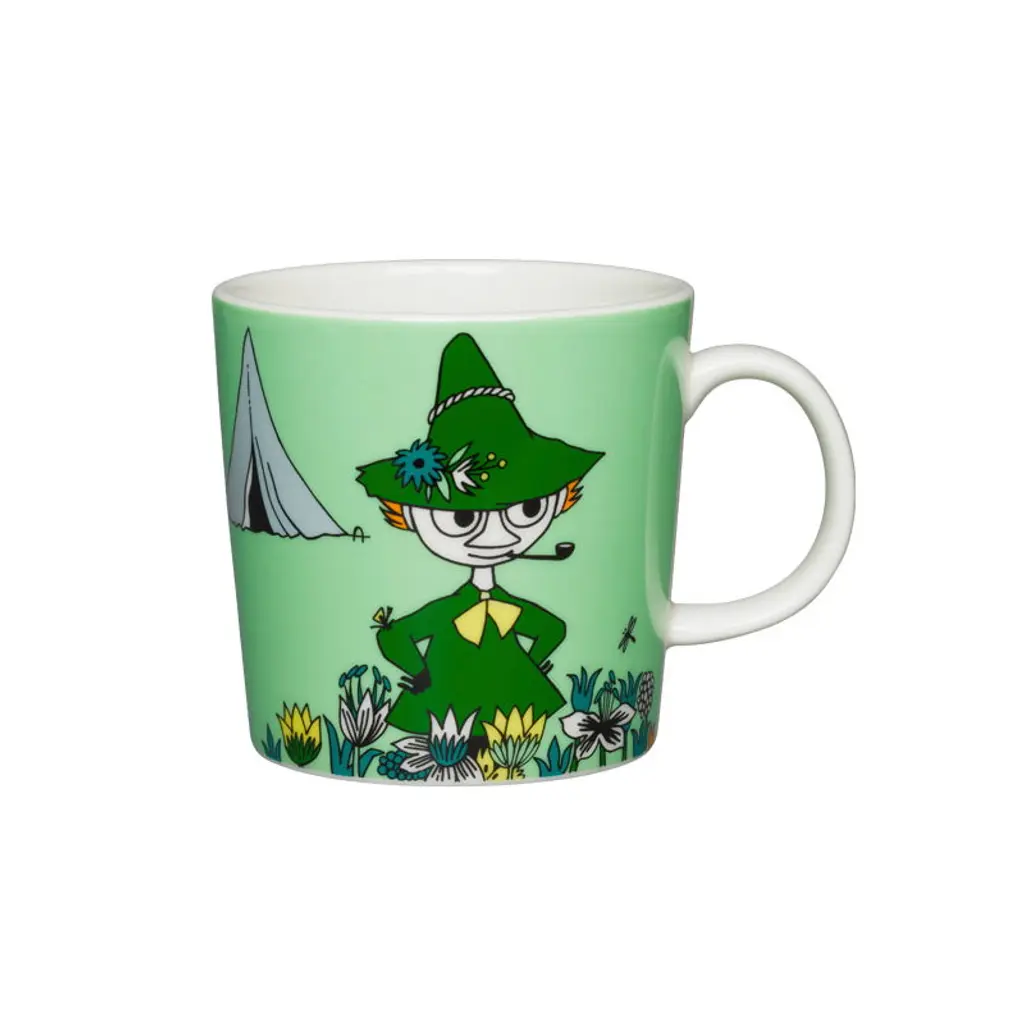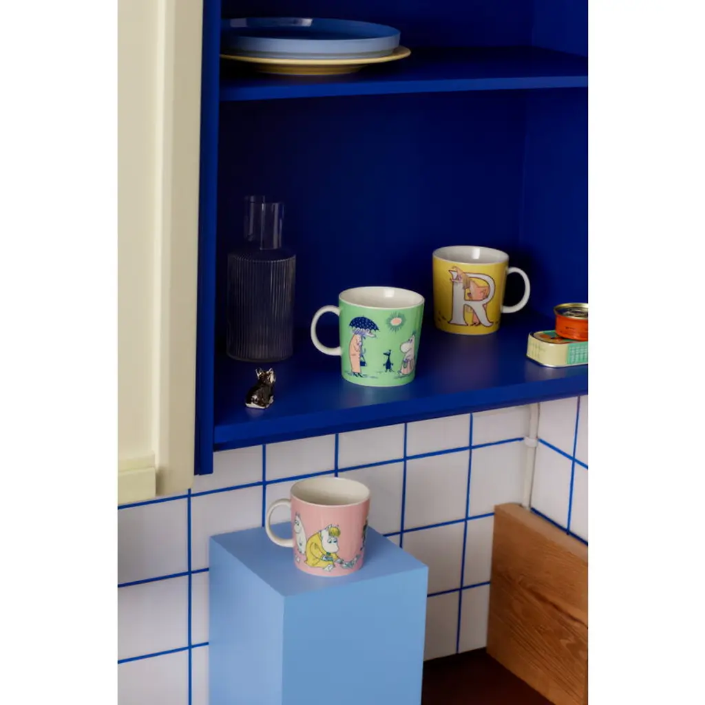 The Moomin ABC mugs are decorated with adorable initials featuring various Moomin characters. The illustrations of the "I" mug are based on the comic book strip Fuddler's Courtship, and they feature various Moomivalley residents acting all strange. The Inspector thinks he is being spied on, while Fillyjonk uses an umbrella even on a sunny day. The peculiar psychiatrist, Dr. Hatter, has managed to get inside their heads with his insinuations, but fortunately, Moominmamma is there to resolve the situation. The I mug is part of the “Reading, writing and the Moomins” initiative that promotes the importance of literacy and the joys of reading. The mugs' Moomin alphabet is based on Tove Jansson’s hand-drawn initial capitals and lettering created for the book The Memoirs of Moominpappa as well as her maps of Moominvalley. The mugs' form is familiar from the Iittala Teema series, but in contrast to most Moomin mugs, the ABC mugs’ size is larger: 13.53 x 0 fl oz (4 x dl. dl). Which words would you form with the Moomin letters?