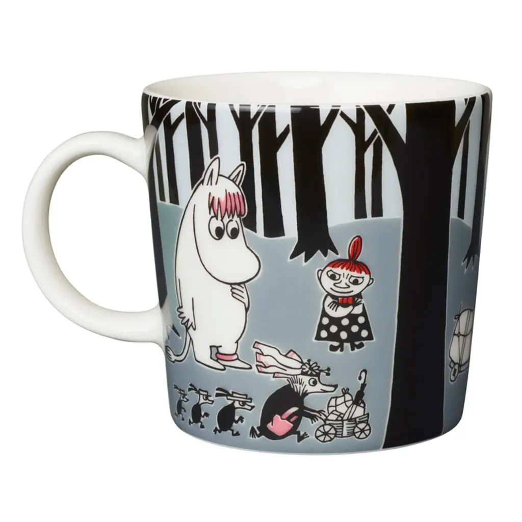 Adventure Move mug from Arabia’s beloved Moomin collection features a motif from Tove Jansson's story Comet in Moominland from 1946. Moomintroll and the Comet is a story about a huge red star appearing in the sky of the peaceful Moominvalley, forcing all the valley’s dwellers to escape. The otherwise gray landscape is decorated with details in pink. The ceramic Moomin mugs are great for serving tea, coffee as well as hot chocolate and will cheer up any table setting. First pieces of Arabia’s Moomin tableware came out already in the 1950s, and the large-scale production began in 1990. All the illustrations are done by Tove Slotte who draws inspiration from the original drawings by Tove Jansson. The form of the collection comes from Arabia’s timeless, ceramic Teema tableware designed by Kaj Franck.