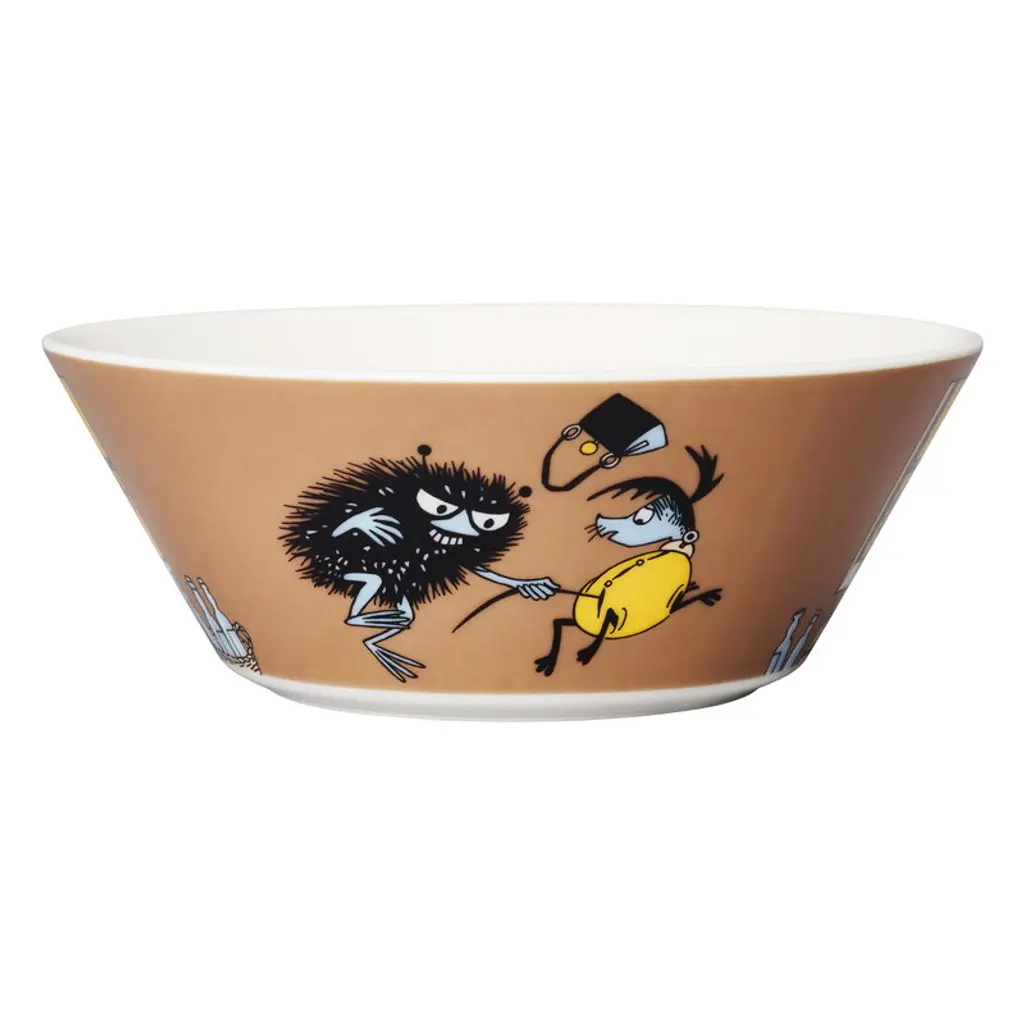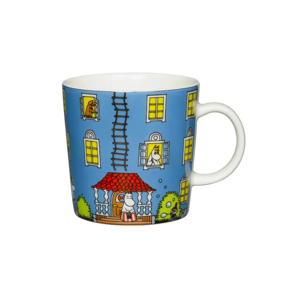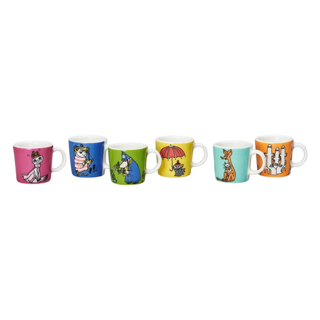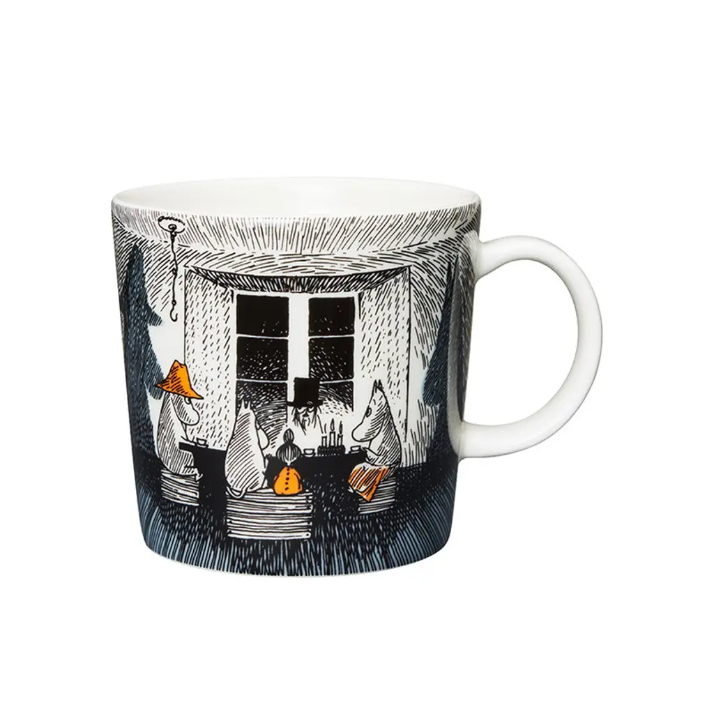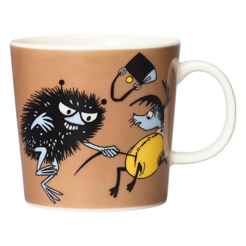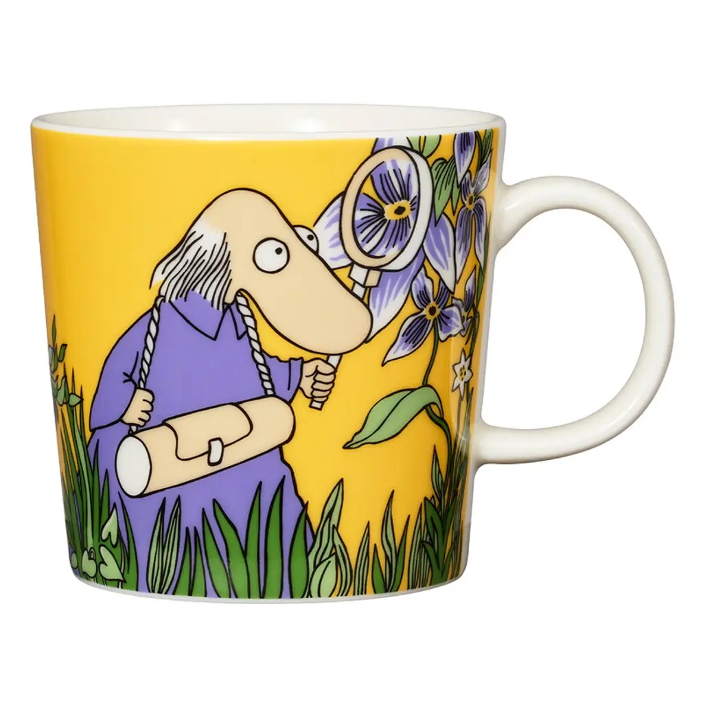 The Fillyjonk mug from Arabia’s Moomin collection features an illustration of Mrs. Fillyjonk, a strict, tidy and sometimes even neurotic character who believes a clean home is key for keeping your life in order. In the illustration, Fillyjonk’s children bring her a telegram announcing the arrival of a ladies’ committee – and so, Fillyjonk starts scrubbing the house for the visitors, as the mug’s reverse side shows. The mugs, bowls and plates of Arabia’s Moomin Classics tableware collection illustrate the characters of Moominvalley. The first pieces of Arabia’s Moomin tableware came out already in the 1950s, and their large-scale production began in 1990. All the illustrations are done by Tove Slotte who draws inspiration from the original drawings by Tove Jansson. The form of the collection comes from Arabia’s timeless ceramic Teema tableware designed by Kaj Franck.