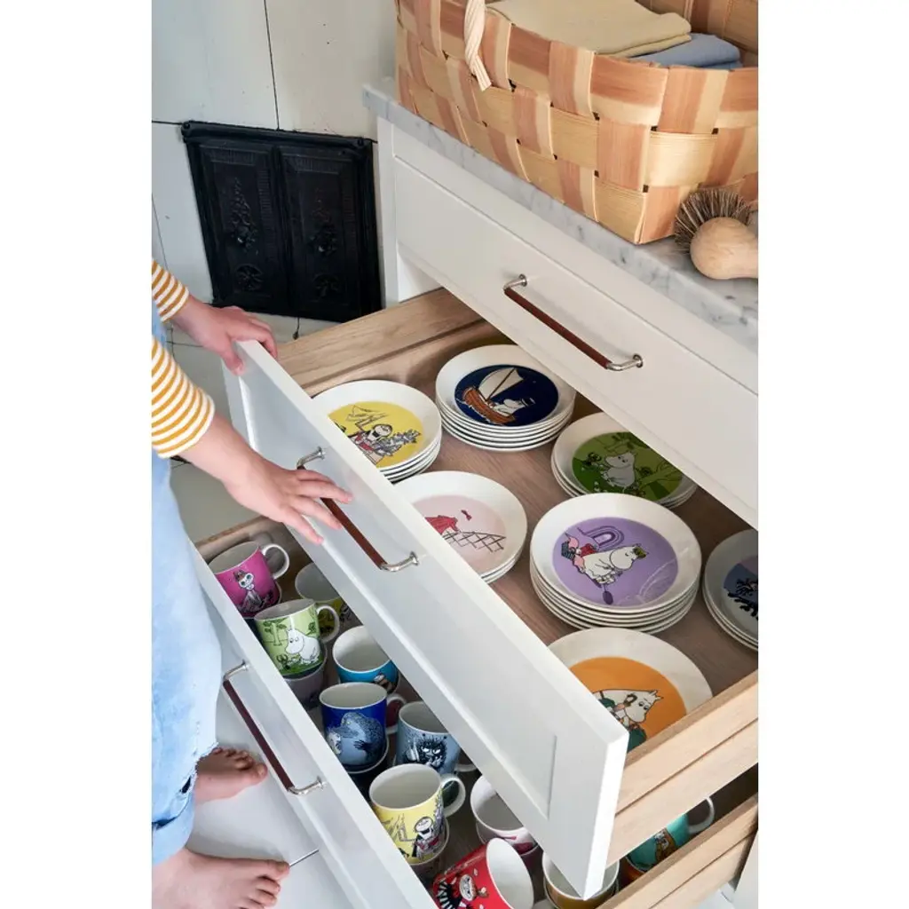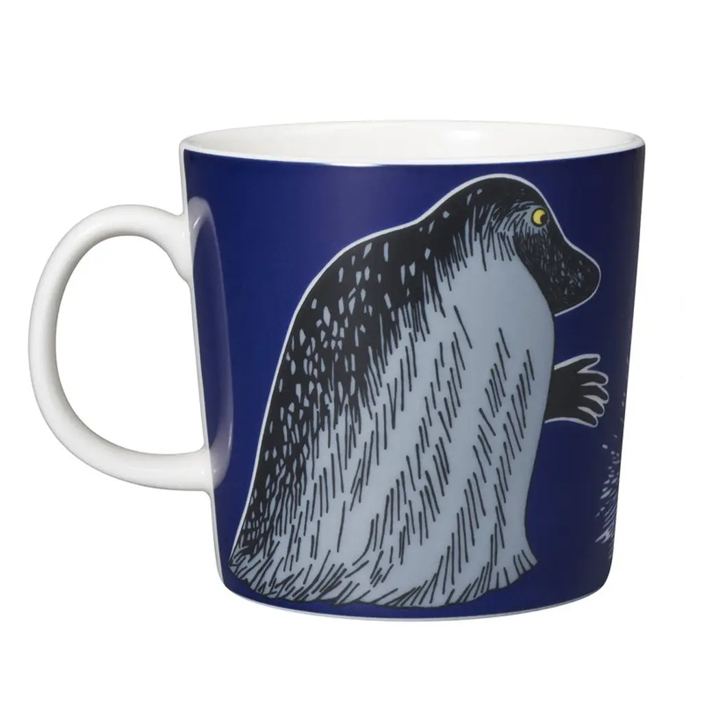 Moomin mug Groke by Arabia presents the scary, silent and lonely resident of the Moominvalley. The Groke is surrounded by a chilly aura, and the ground freezes under her wherever she goes. The ceramic Moomin mugs are great for serving tea, coffee as well as hot chocolate and will cheer up any table setting. The mugs, bowls and plates of Arabia’s Moomin Classics tableware collection illustrate the characters of the Moominvalley from the front and behind. First pieces of Arabia’s Moomin tableware came out already in the 1950s, and the large-scale production began in 1990. All the illustrations are done by Tove Slotte who draws inspiration from the original drawings by Tove Jansson. The form of the collection comes from Arabia’s timeless, ceramic Teema tableware designed by Kaj Franck.