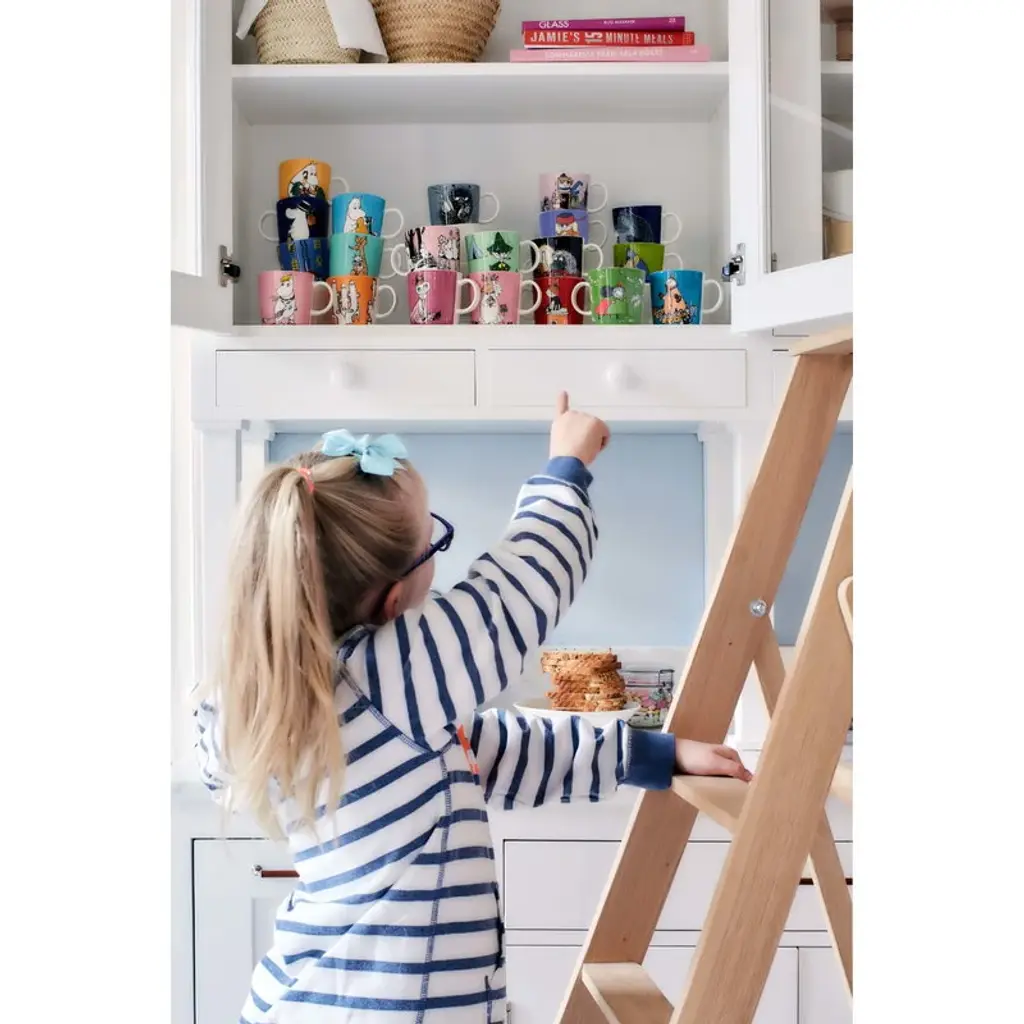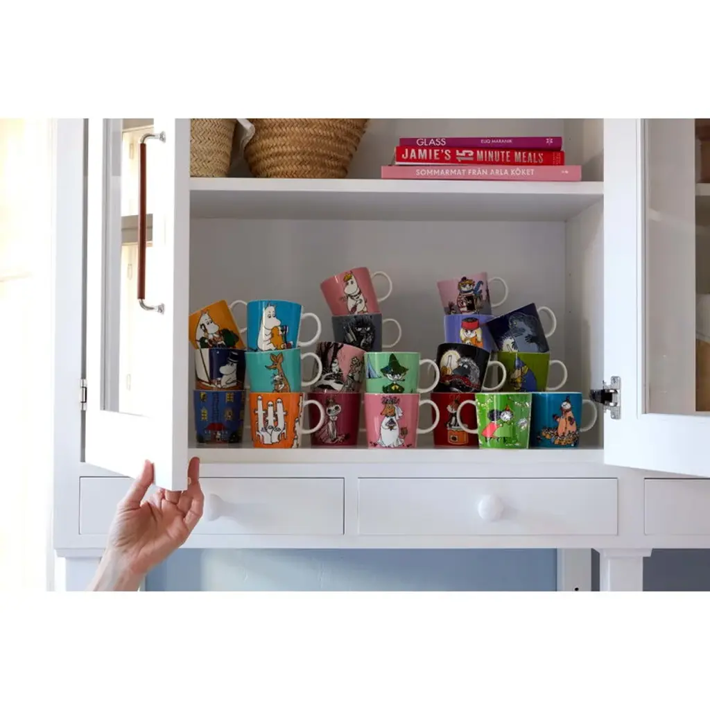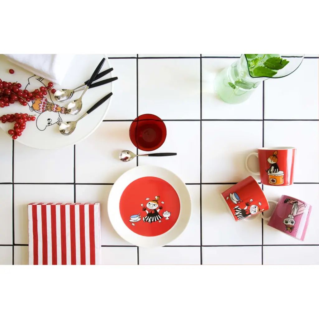 Moomin mug Mymble by Arabia presents the calm and kind older sister of the hot-headed Little My. Mymble has a strong crush on the Constable of the Moominvalley. The ceramic Moomin mugs are great for serving tea, coffee as well as hot chocolate and will cheer up any table setting. The mugs, bowls and plates of Arabia’s Moomin Classics tableware collection illustrate the characters of the Moominvalley from the front and behind. First pieces of Arabia’s Moomin tableware came out already in the 1950s, and the large-scale production began in 1990. All the illustrations are done by Tove Slotte who draws inspiration from the original drawings by Tove Jansson. The form of the collection comes from Arabia’s timeless, ceramic Teema tableware designed by Kaj Franck.