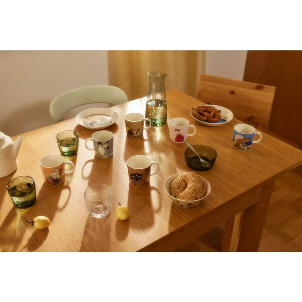 The Stinky in Action mug from Arabia’s Moomin collection features an illustration of Moominvalley’s resident menace, Stinky. However, this time his actions are surprisingly noble: he is trying to save Moominmamma’s purse from the paws of a thieving hound. Although stealing is one of Stinky’s favorite pastimes, even he knows not to touch Moominmamma's handbag. The mugs, bowls and plates of Arabia’s Moomin Classics tableware collection illustrate the characters of Moominvalley. The first pieces of Arabia’s Moomin tableware came out already in the 1950s, and their large-scale production began in 1990. All the illustrations are done by Tove Slotte who draws inspiration from the original drawings by Tove Jansson. The form of the collection comes from Arabia’s timeless ceramic Teema tableware designed by Kaj Franck.
