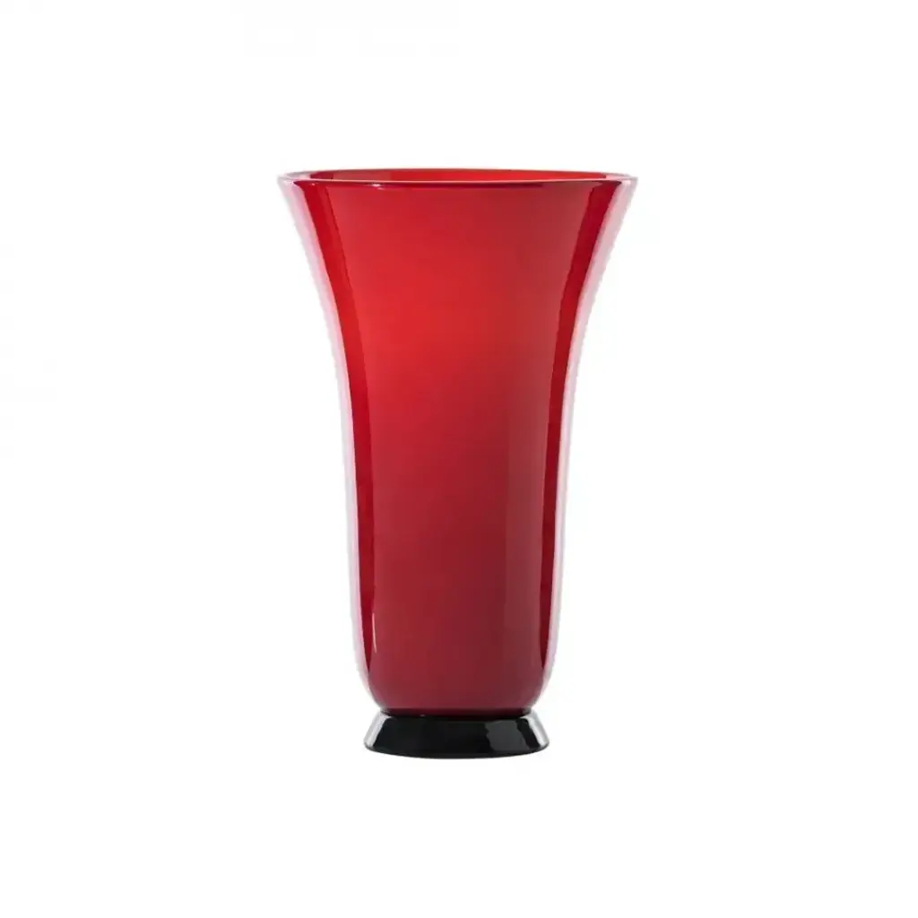 Fashioned of mouth-blown glass, this decorative bottle hints at luxurious imagery with its vibrant ruby-red tone. A flared neck tops the generous bulging silhouette, its sculptural look and its natural gradient effect underline its contemporary flair. More designs from the Morandi Collections can be explored by browsing the Artemest catalog.