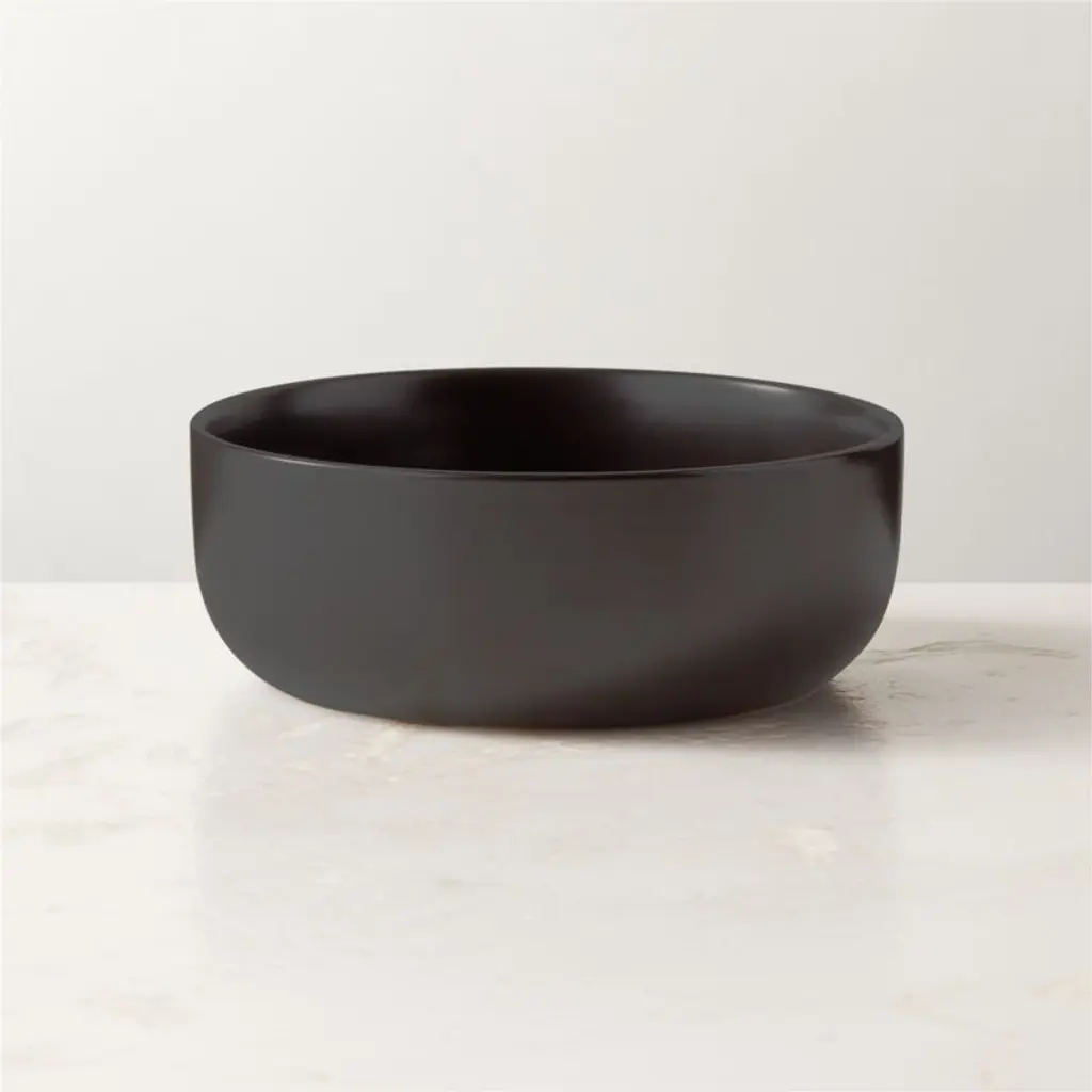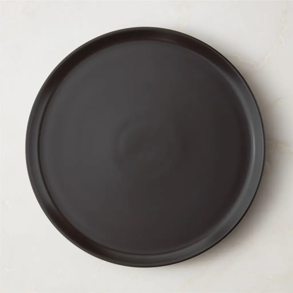 Crafted of porcelain for tradition and durability, minimalist dinnerware from award-winning Japanese designer Ryuichi Kozeki easily transitions from casual to formal settings. Featuring clean, raised edges, the modern silhouettes are glazed by hand in sleek black for an elegant finish with a soft sheen. CB2 exclusive.