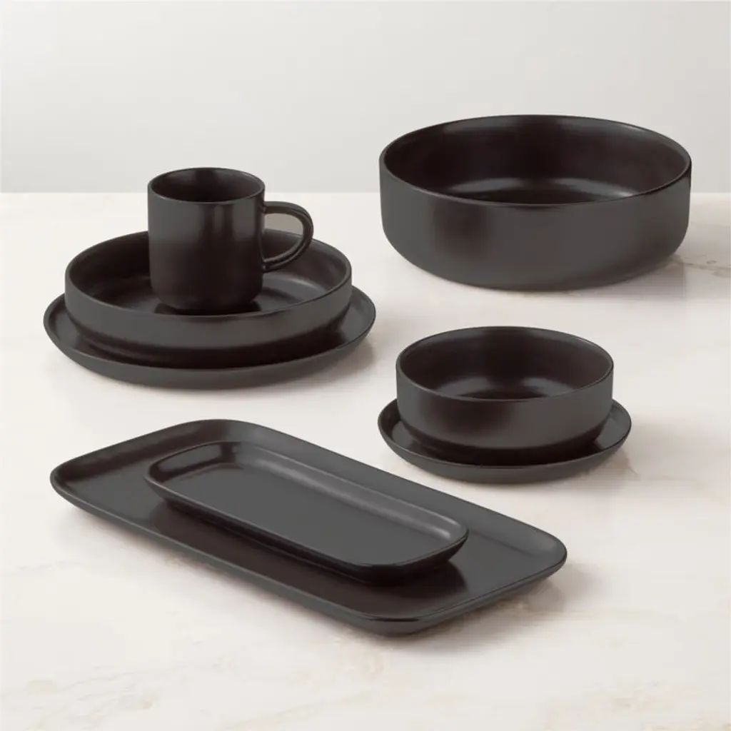Crafted of porcelain for tradition and durability, minimalist salad plate from award-winning Japanese designer Ryuichi Kozeki easily transitions from casual to formal settings. Featuring clean, raised edges, the modern silhouette is glazed by hand in sleek black for an elegant finish with a soft sheen. For a coordinated table, pair with the other pieces in the Mori dinnerware and serveware collections. CB2 exclusive.