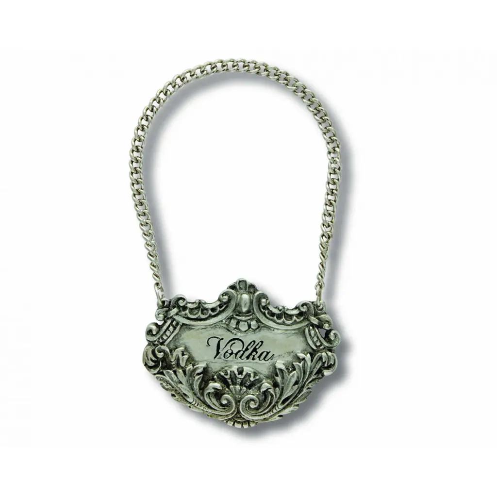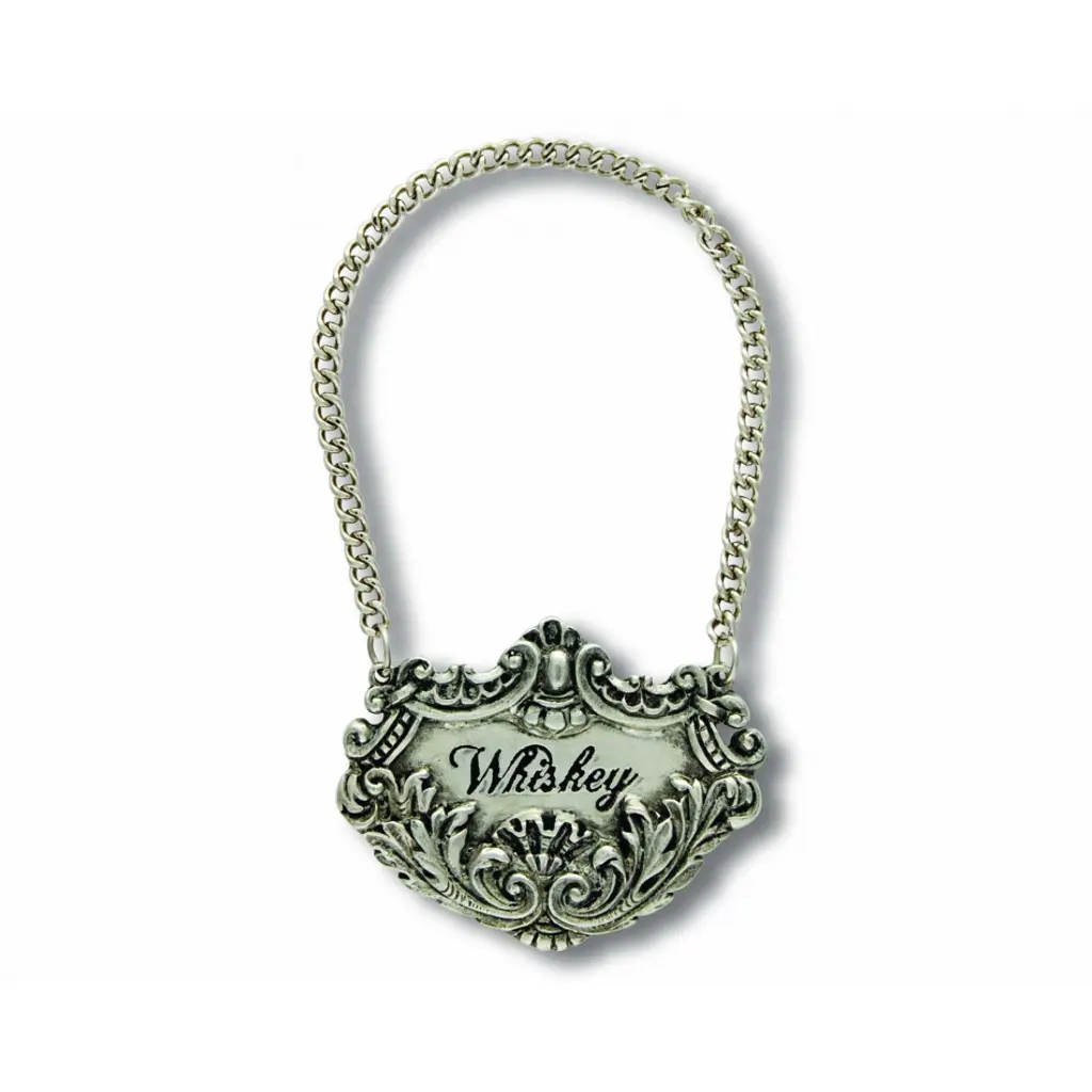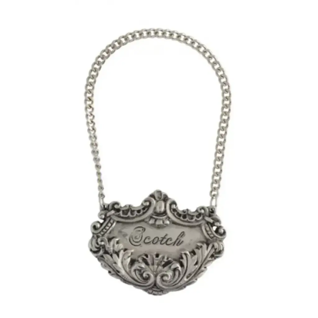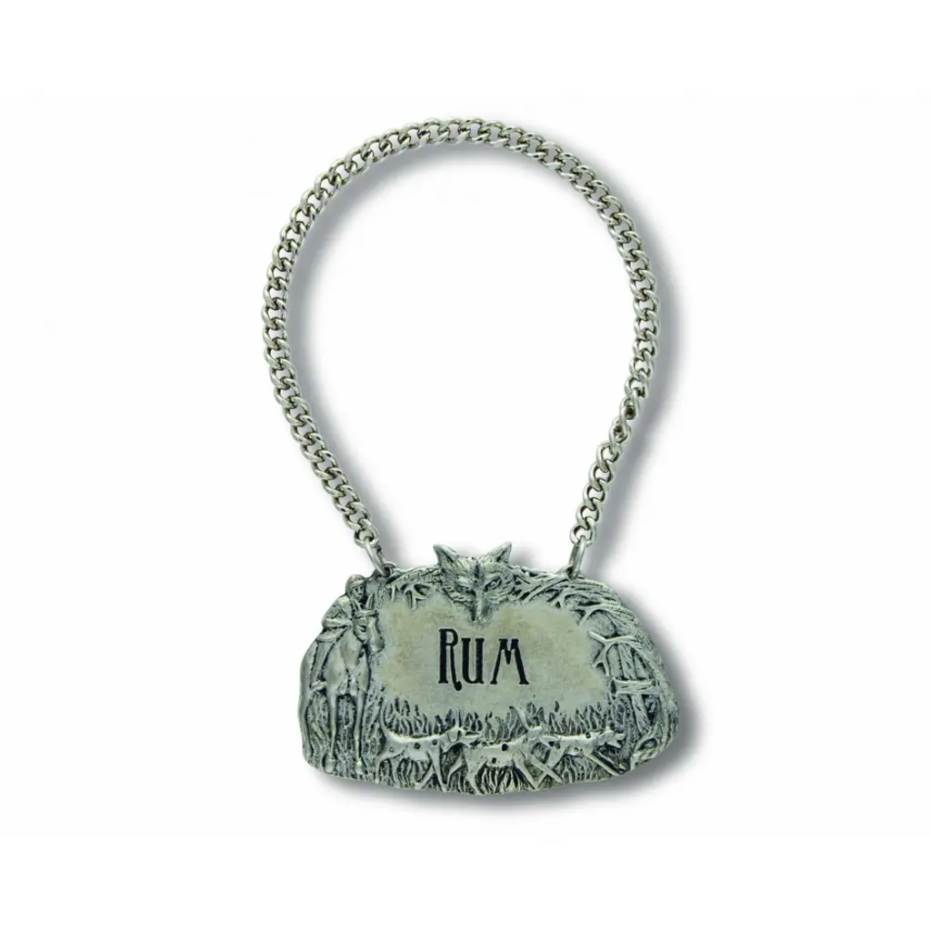 The fox, the hound, the horse and the hunter all appear in exquisitely detailed mid-relief repoussé on Vagabond House's pure pewter Morning Hunt suite of spirit decanter tags. Featuring a weighted pewter chain to ensure a perfect fit for your decanter of choice. Your choice of liquor name is center engraved in an elegant serif font, encircled by brambles, fields and the players of the hunt. Choose from the following spirits: Bourbon-Gin-Rum-Scotch-Tequila-Vodka-Whiskey Vagabond House is a family-owned American company specializing in fine pewter tableware, servingware and giftware. Largely inspired by nature, their exclusive products are designed to be unique, functional heirlooms for those who seek to express tradition and style in both family and formal entertaining.