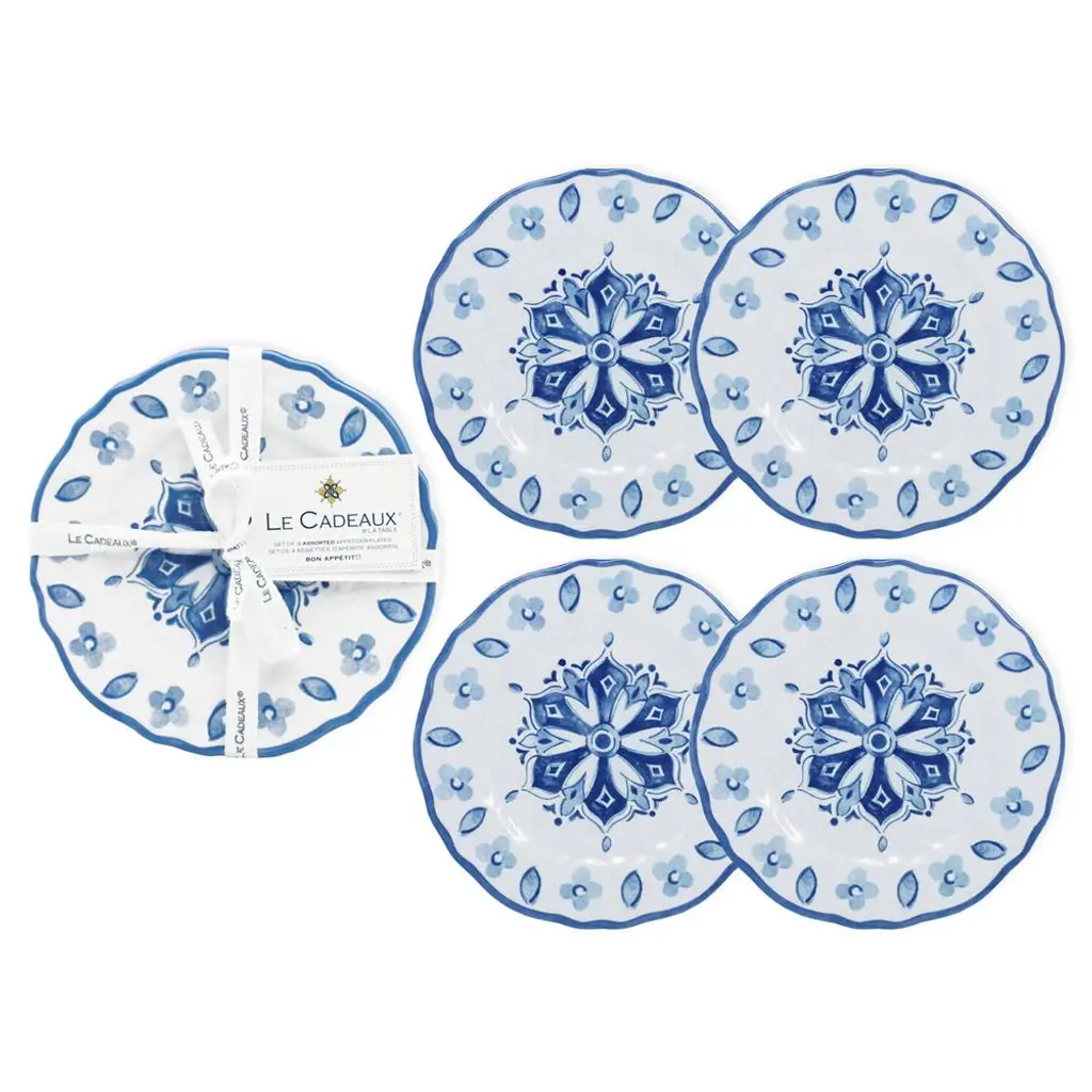 Moroccan Global White Melamine Blue Floral Appetizer Plate - Set Of 4