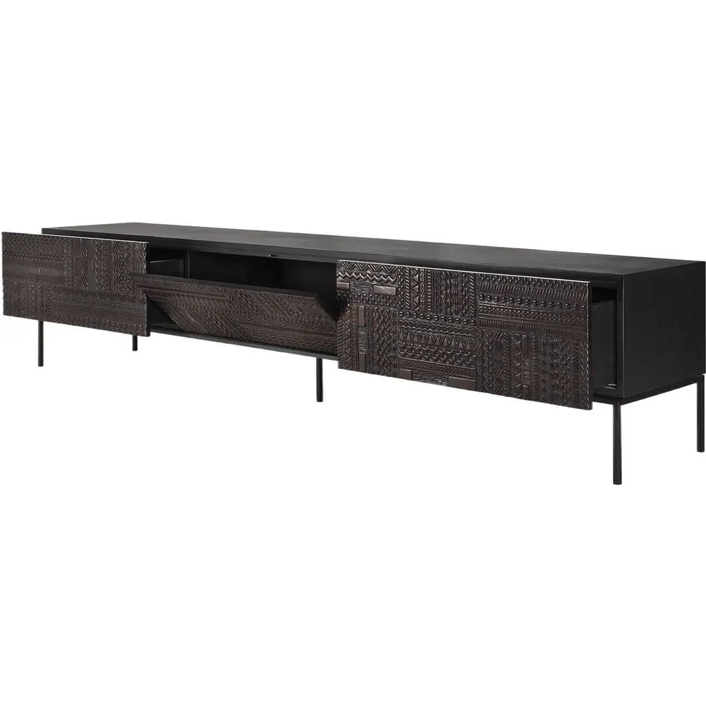 Mosaic Teak 1 Door/2-drawer Tv Cupboard, Black