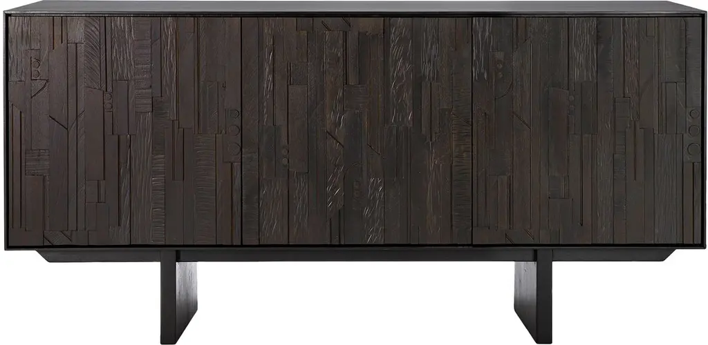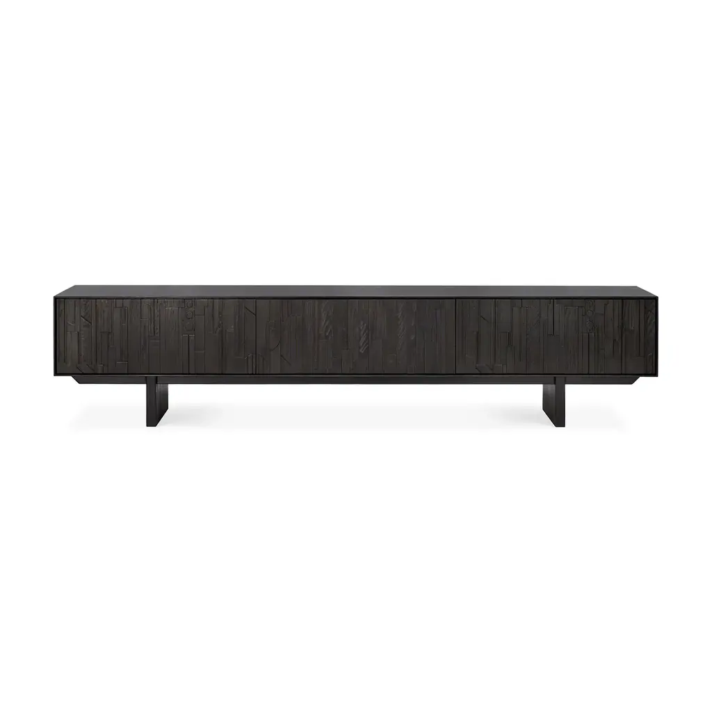 Expect the unexpected Inspired by the remaining offcuts for the factory designs, the Mosaic TV Cupboard from Ethnicraft offers a tactile and layered design ready to instantly elevate any room in your home. Hand-crafted from solid teak wood with solid mahogany doors, the front of this TV Cupboard showcases layered wood pieces in various shapes, sizes, and textures for an eclectic, yet dynamic design. Available in small or large sizes, this cupboard is ready to hold everything from electronics and media to photo albums and decor from your travels around the world. Station in the living room or lounge area for the perfect storage solution sure to turn heads and top with your favorite flat screen tv for the perfect movie night at home with friends and family. Why We Love It: Features