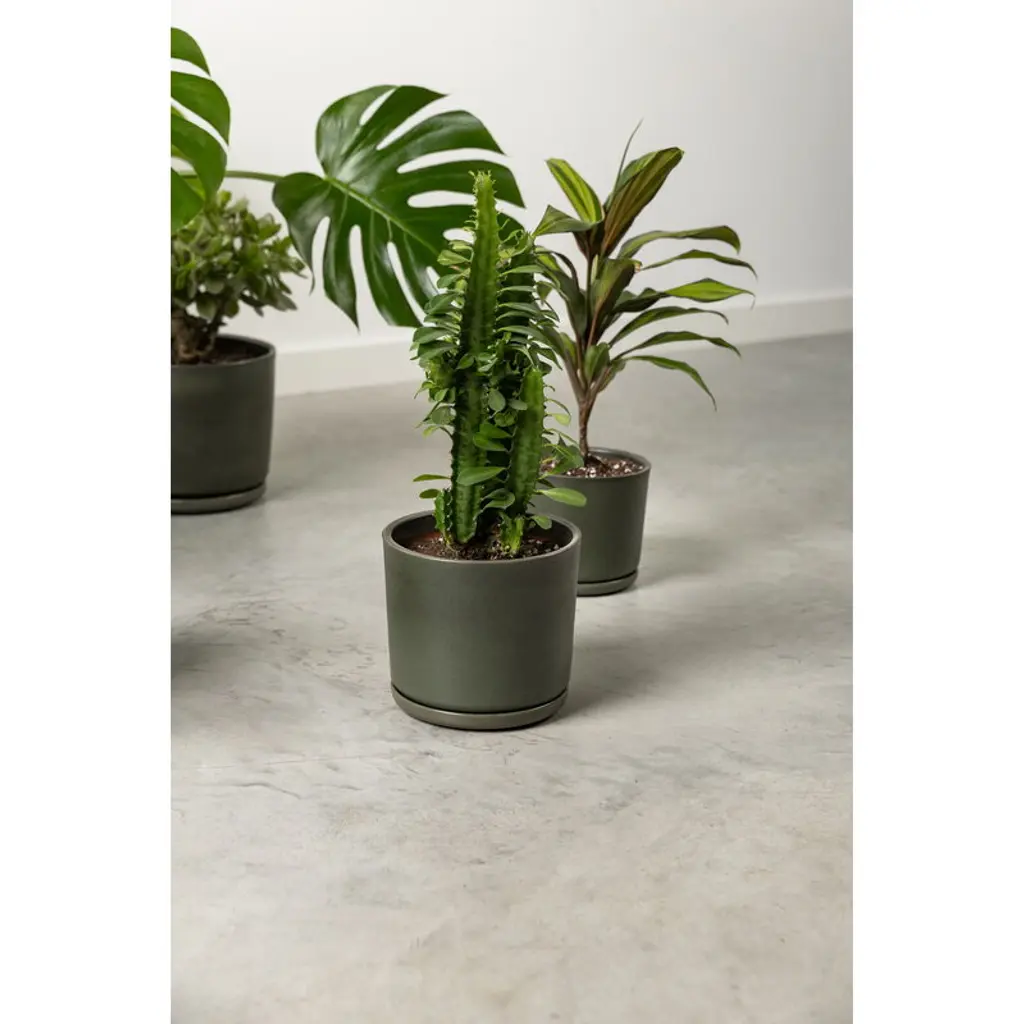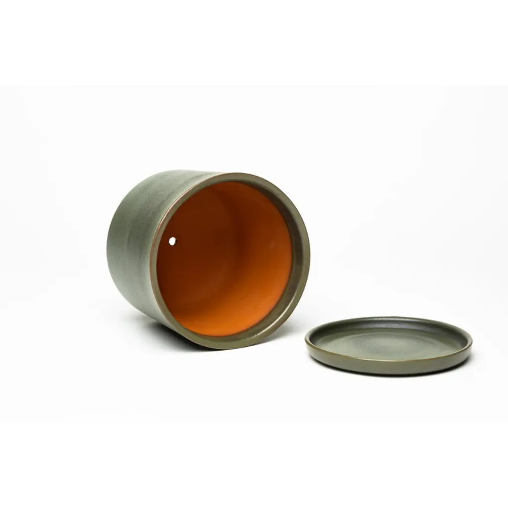Vaidava's Moss is a stunning collection of flower pots and saucers made from Latvian red clay. The pots display a raw, natural surface on the inside, while their exteriors are adorned with a subtle matte glaze in shades of grayish green. The Moss range includes a variety of pots and saucers in different colors and sizes – whether you're a horticultural enthusiast or a newborn green thumb, the pots offer an excellent canvas for growing your own lush oasis! The pots are suitable for even the more novice gardeners, as the porous edges allow extra moisture to evaporate from the soil, saving the plant from overwatering.