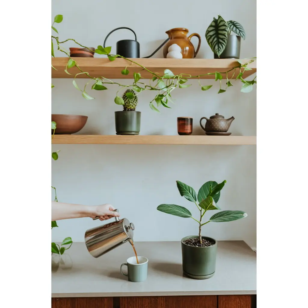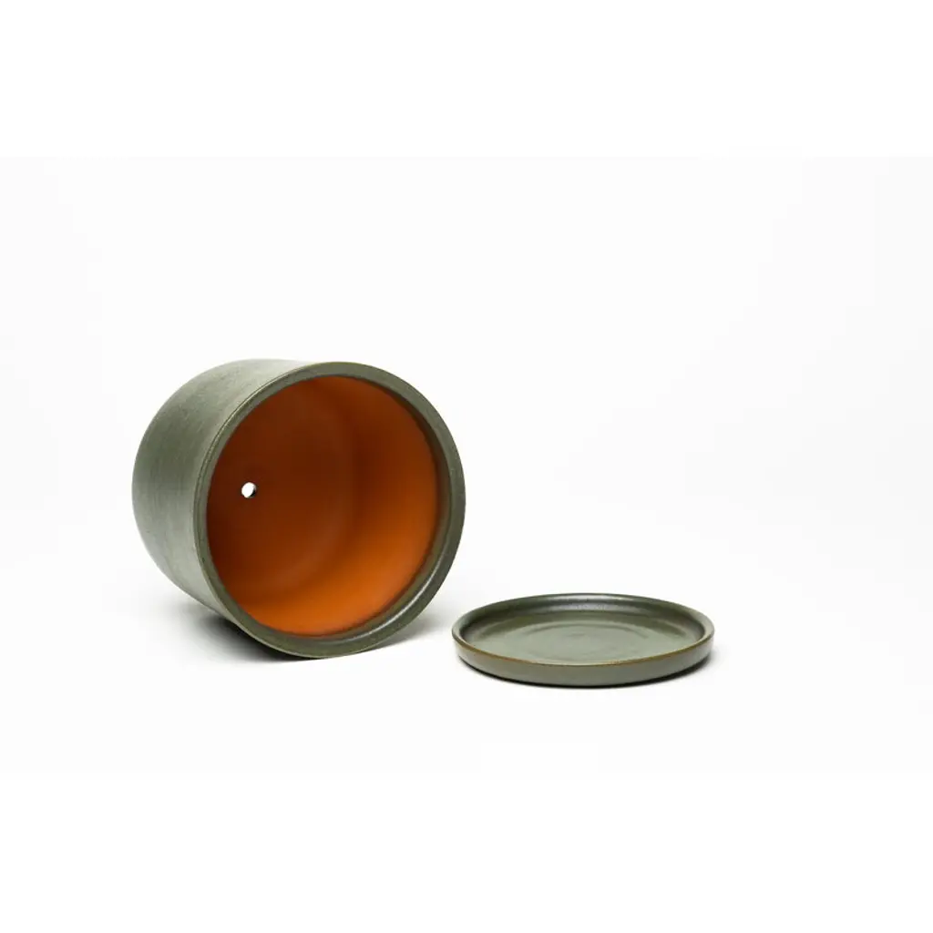 Vaidava's Moss is a stunning collection of flower pots and saucers made from Latvian red clay. The pots display a raw, natural surface on the inside, while their exteriors are adorned with a subtle matte glaze in shades of grayish green. The Moss range includes a variety of pots and saucers in different colors and sizes – whether you're a horticultural enthusiast or a newborn green thumb, the pots offer an excellent canvas for growing your own lush oasis! The pots are suitable for even the more novice gardeners, as the porous edges allow extra moisture to evaporate from the soil, saving the plant from overwatering.