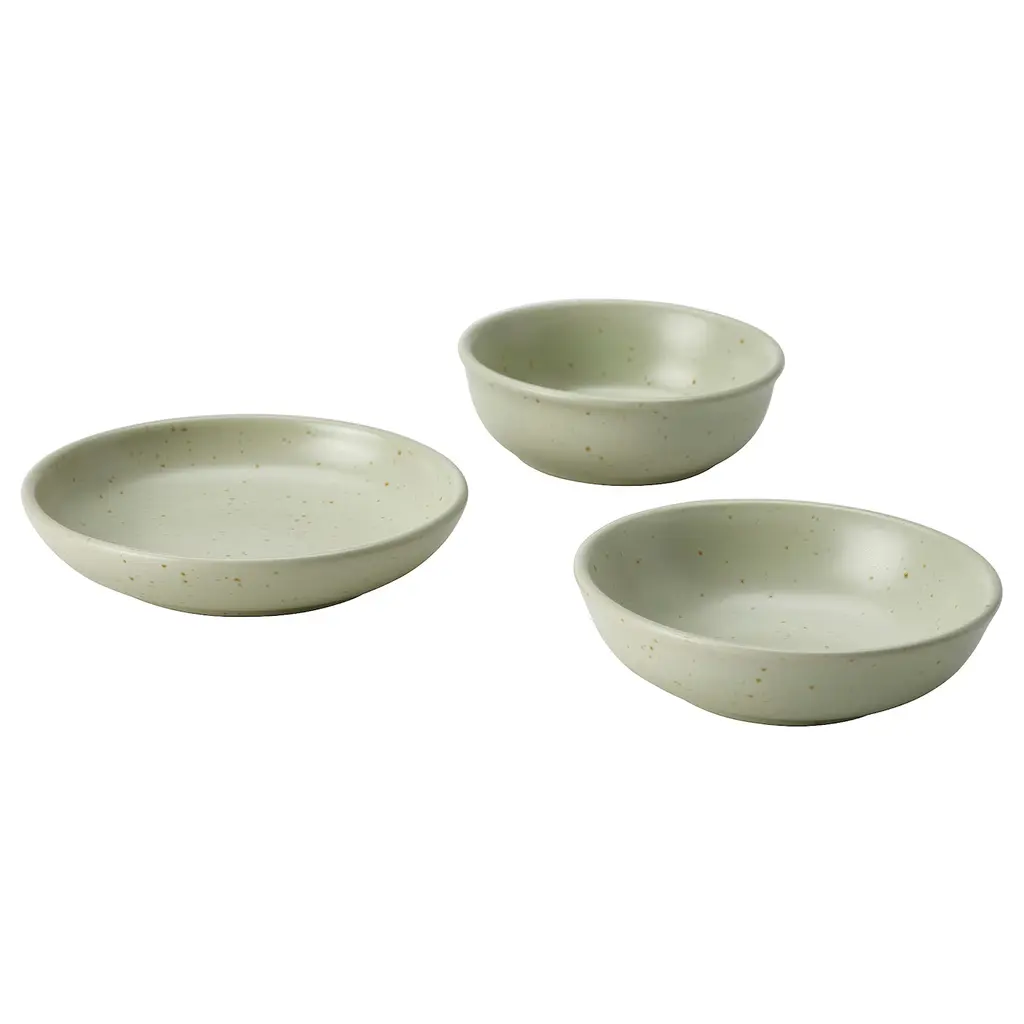MOSSMAL Plate/bowl set of 3 - dot pattern/light green. Match with more pieces from the timeless and harmonious MOSSMAL dinnerware – the light-green matte finish with subtle speckles suits both everyday meals and special occasions.