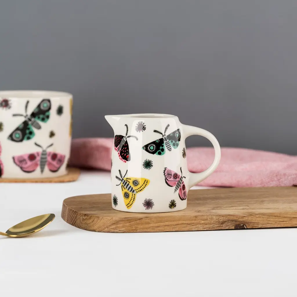 A beautiful little ceramic jug decorated with Hannah's hand-drawn delicate Moths, this would make the perfect gift for any moth-lover. This small jug is perfectly sized for milk or cream, and comes beautifully packed in a recycled card gift box, so makes the ideal gift for jug collectors.At just 7.2 cm high, it still holds a decent amount of cream, or maybe maple syrup for your morning pancakes?As one of the smaller pieces in the Moth collection, it will look fabulous on the kitchen dresser. Handmade in Sri Lanka from stoneware ceramic.